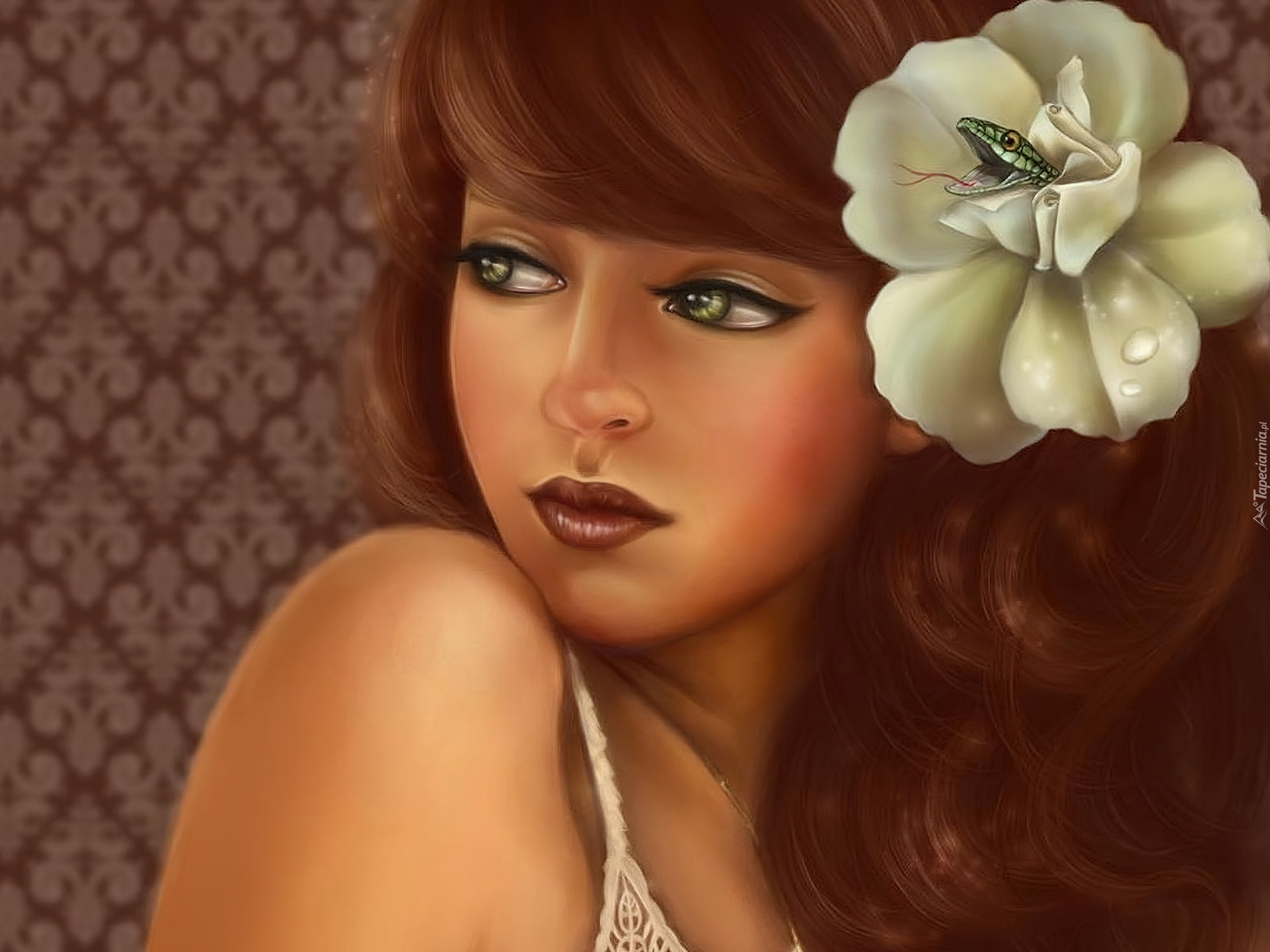 Edytor tapety: Kobieta, Kwiat, Jaszczurka