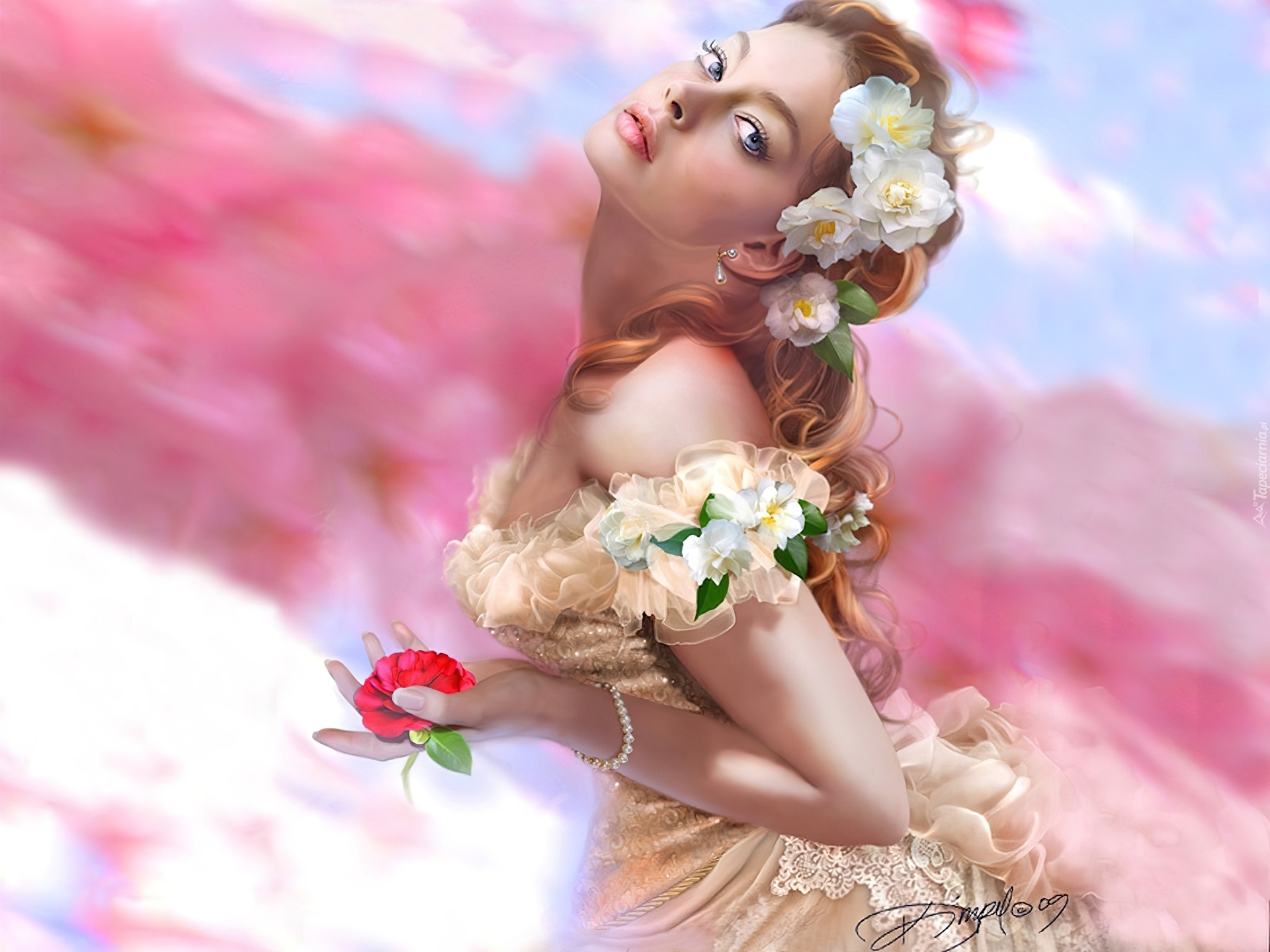 Edytor tapety: Kobieta, Niebo, Róża