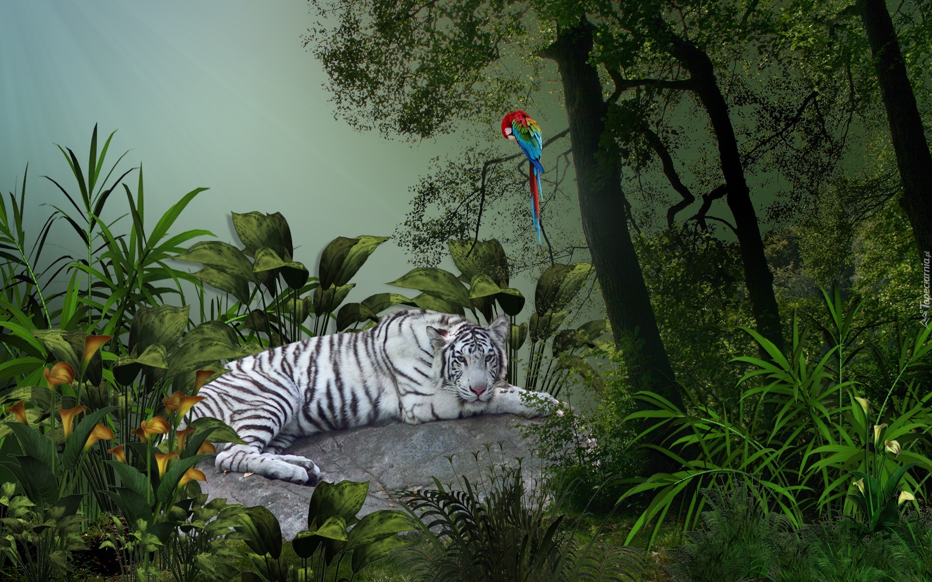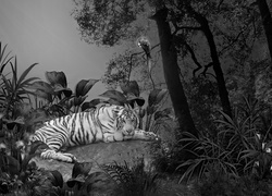 Edytor tapety: Biały, Tygrys, Kamień, Papuga