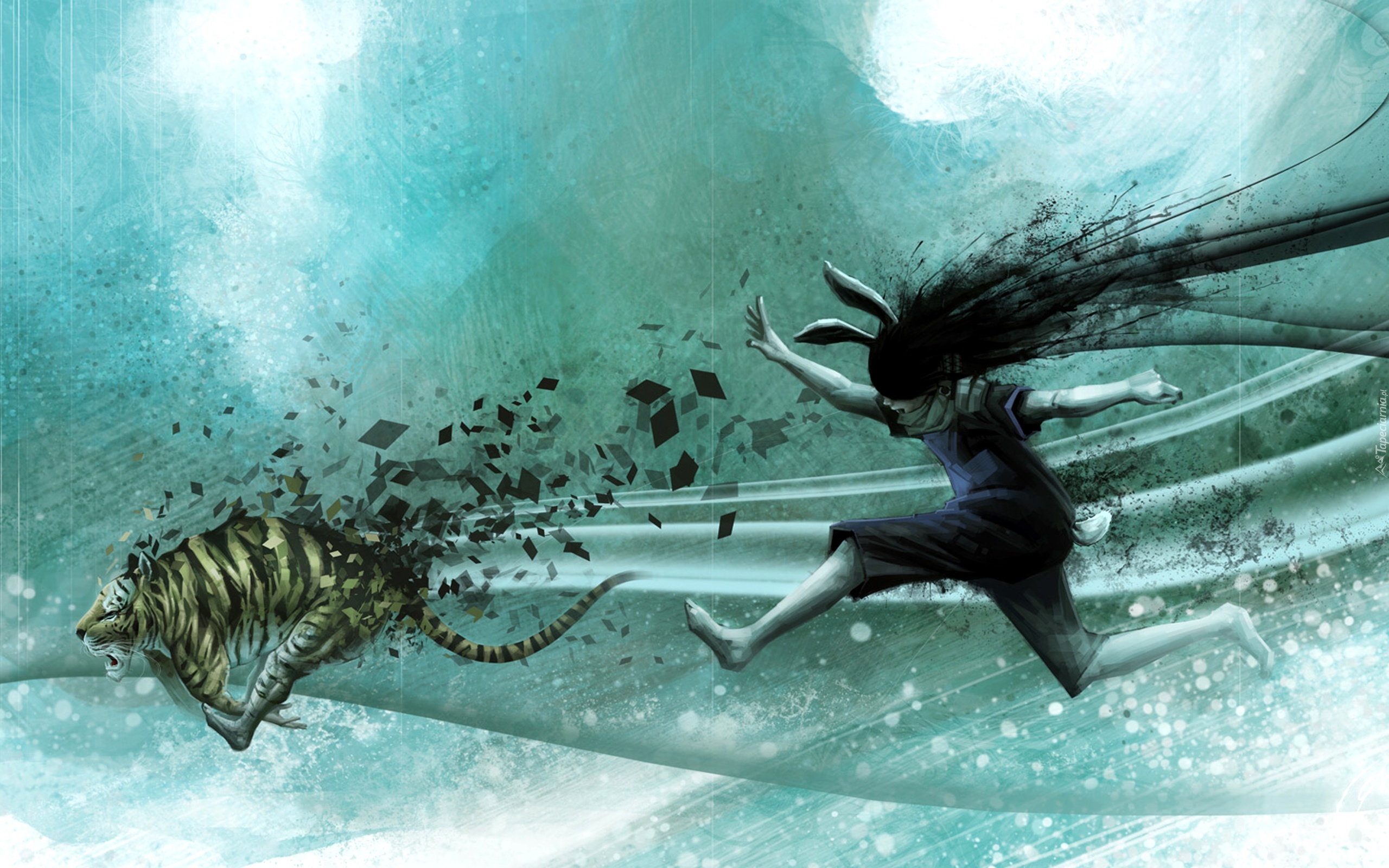 Edytor tapety: Tygrys, Dziewczyna, Królik