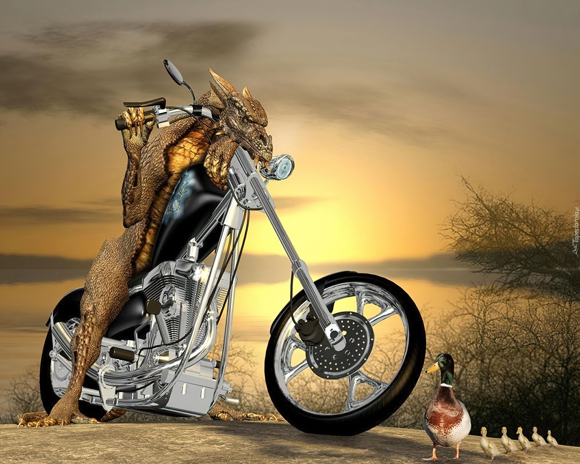 Edytor tapety: Smok, Motor, Kaczki