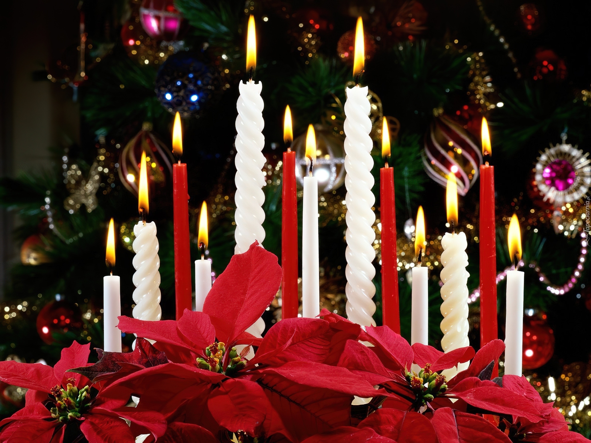 Edytor tapety: Gwiazda, Betlejemska, Świeczki, Bombki, Choinka