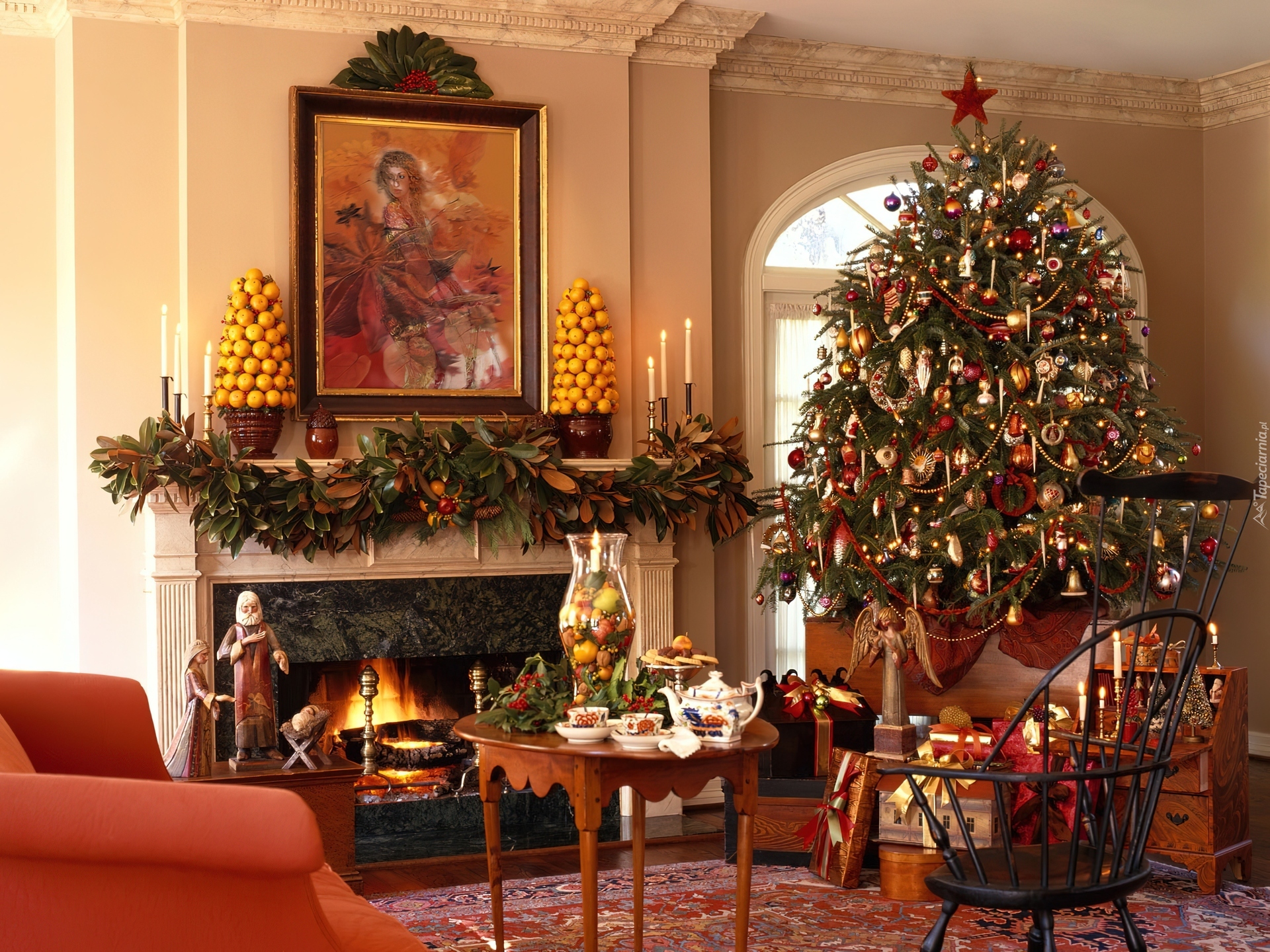 Edytor tapety: Choinka, Prezenty, Kominek, Stolik