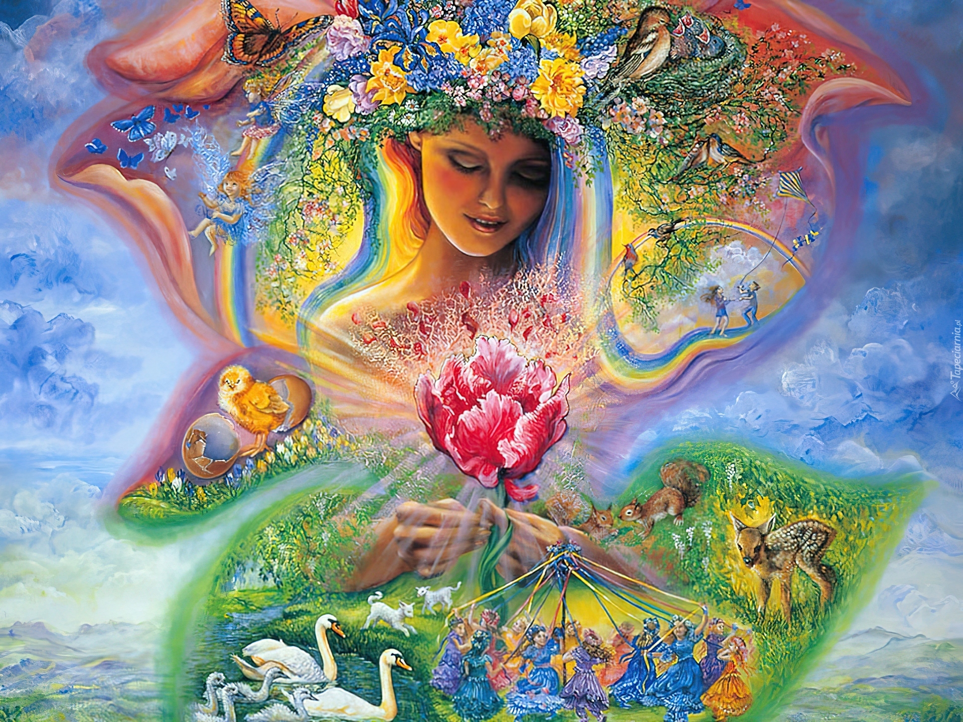 Edytor tapety: Dziewczyna, Wianek, Zwierzęta