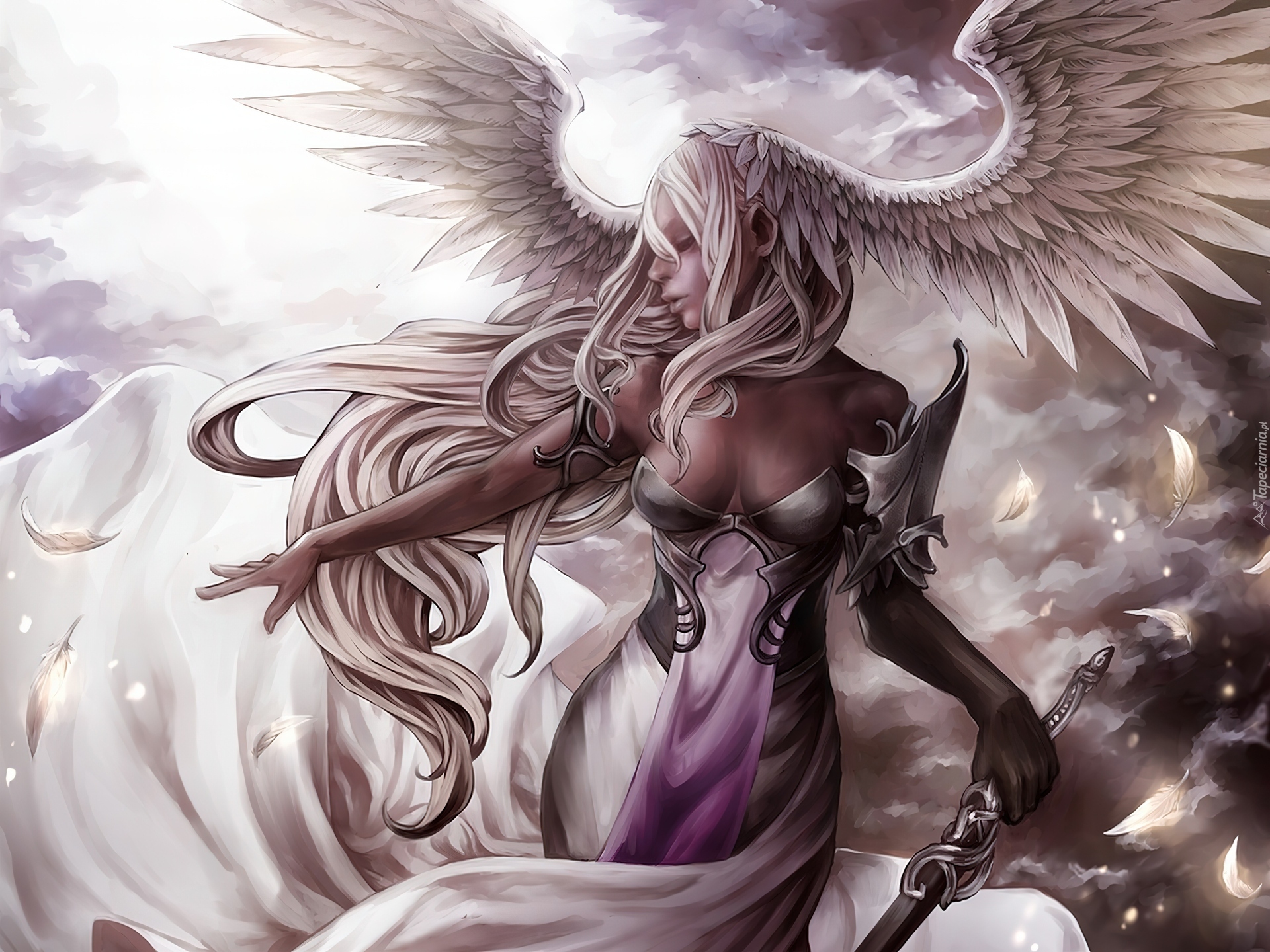Edytor tapety: Anielica, Skrzydła, Miecz, Niebo