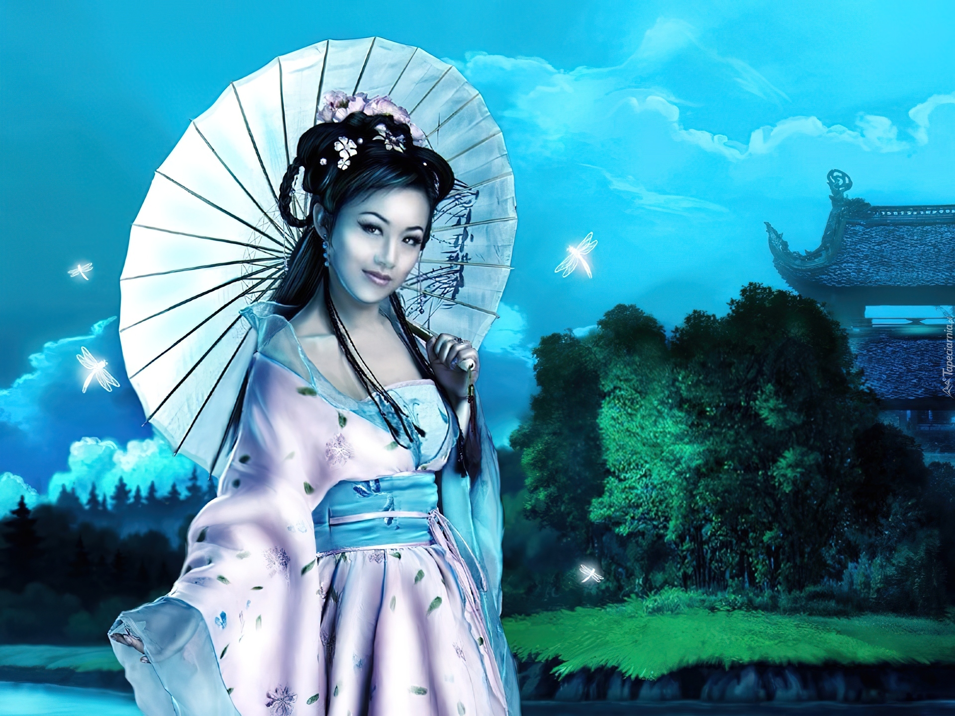 Edytor tapety: Dziewczyna, Parasol, Świetliki
