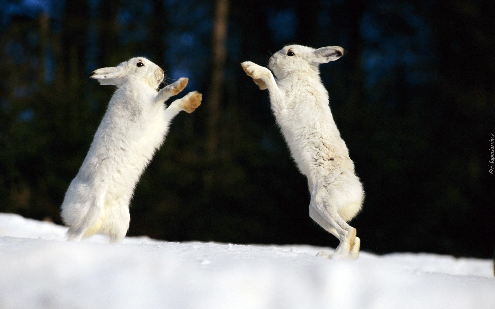 Edytor tapety: Dwa, Białe, Zające, Śnieg