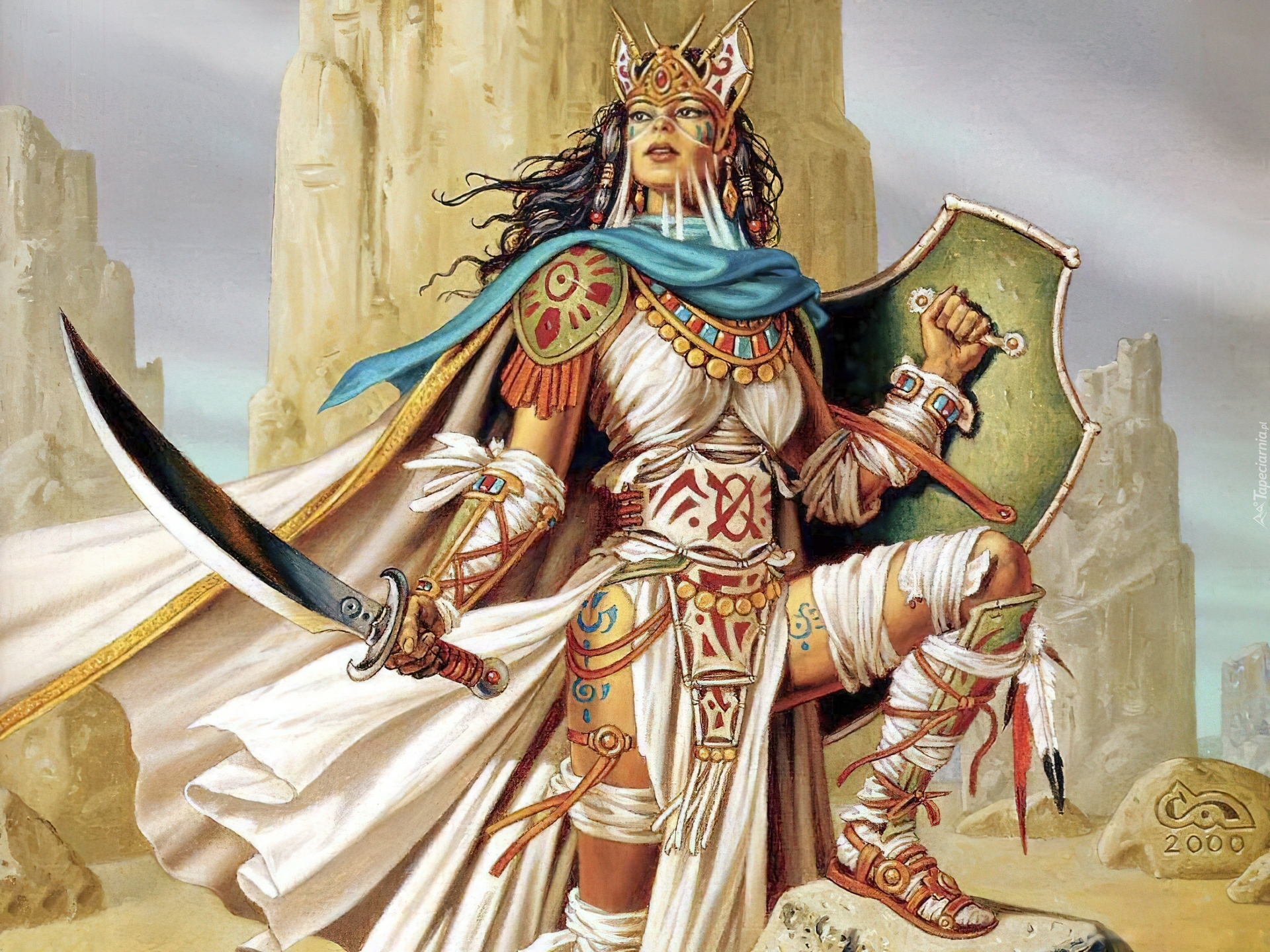 Edytor tapety: Dziewczyna, Miecz, Tarcza