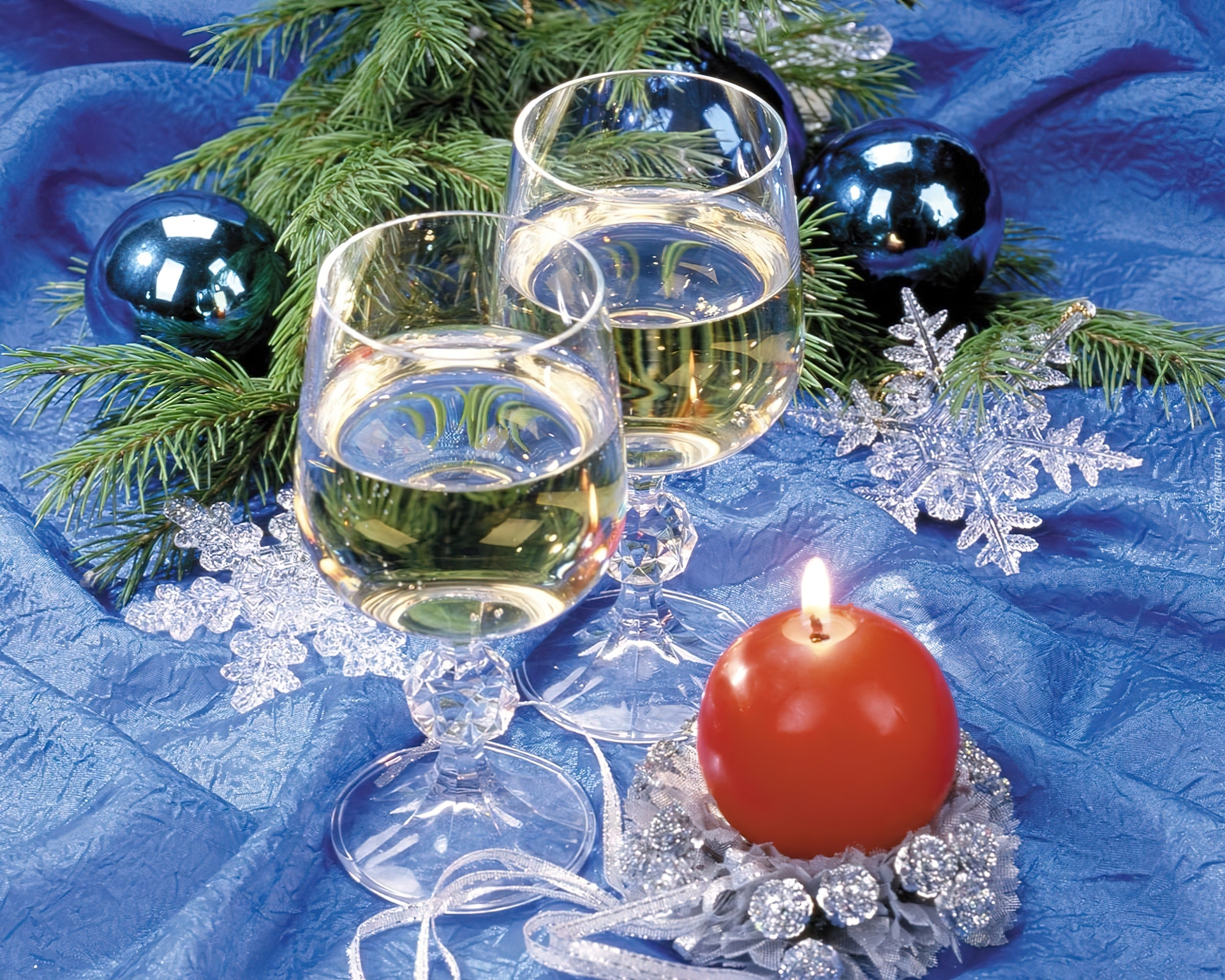 Edytor tapety: Kieliszki, Wino, Świeczki, Bombki, Kompozycja