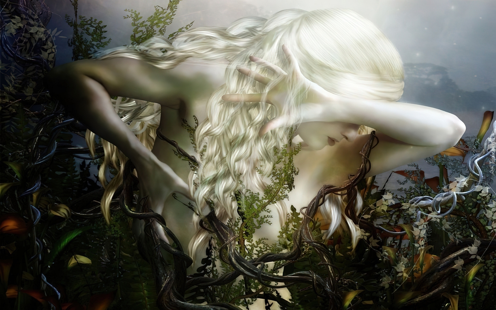 Edytor tapety: Blondynka, Ręka, Krzaki