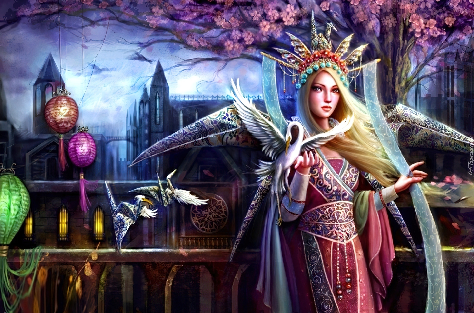 Edytor tapety: Kobieta, Ptaki, Strój, Ludowy