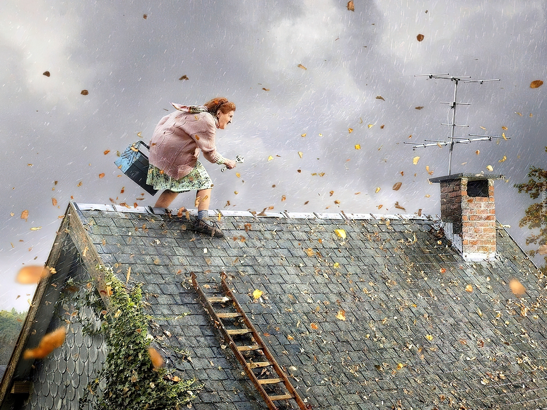 Edytor tapety: Babcia, Dach, Antena