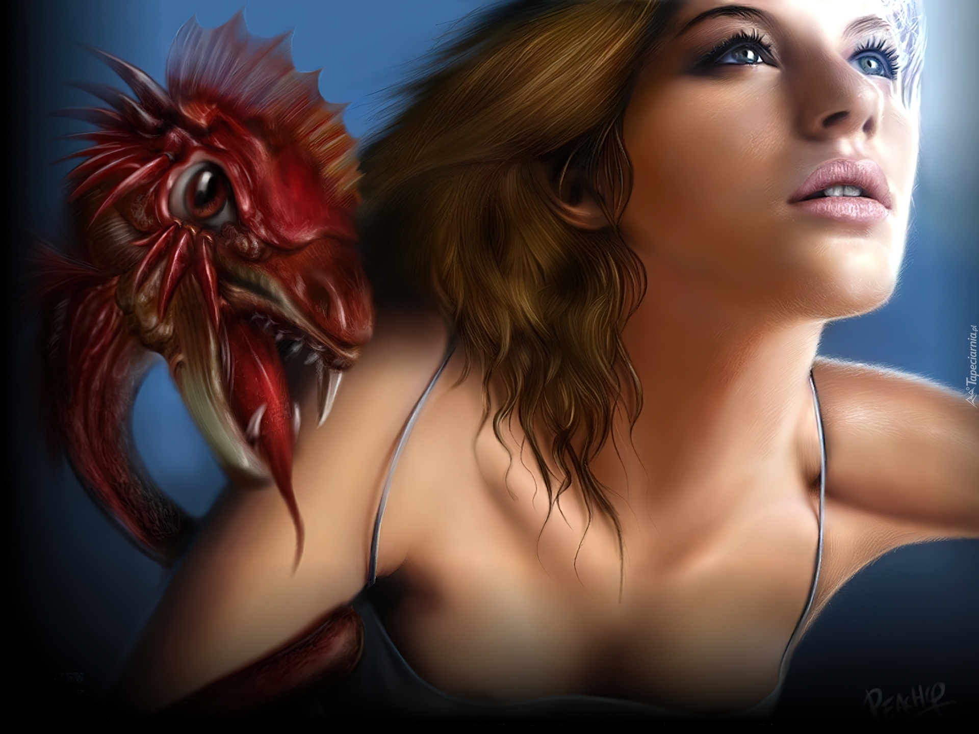 Edytor tapety: Kobieta, Niebieskie, Oczy, Smok