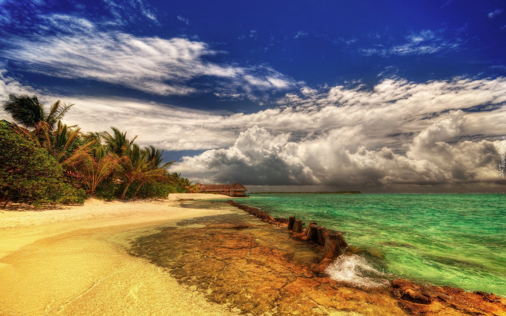 Edytor tapety: Plaża, Zielona, Tafla, Morza, Ciemne, Chmury