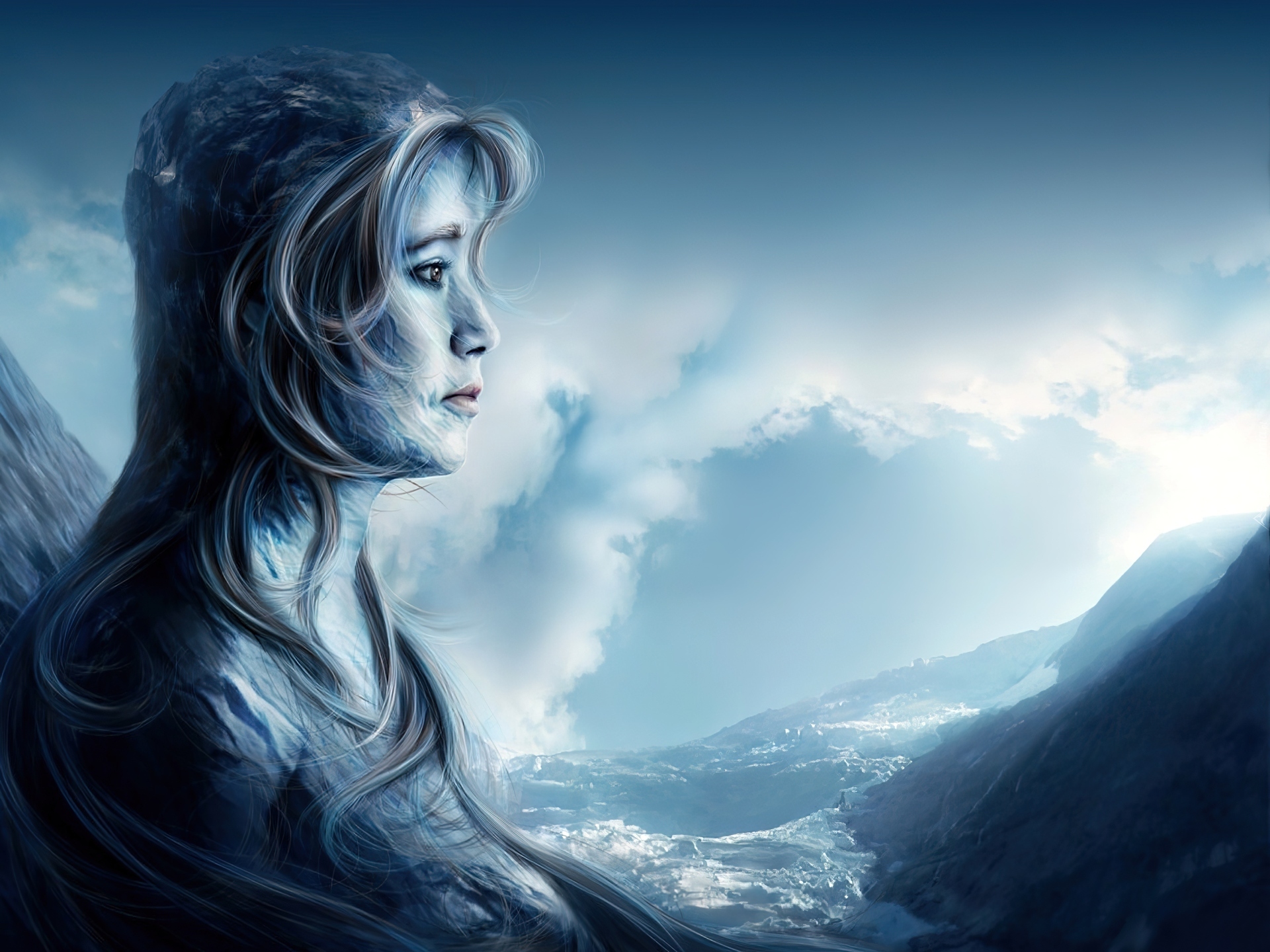 Edytor tapety: Smutna, Kobieta, Fale, Morze