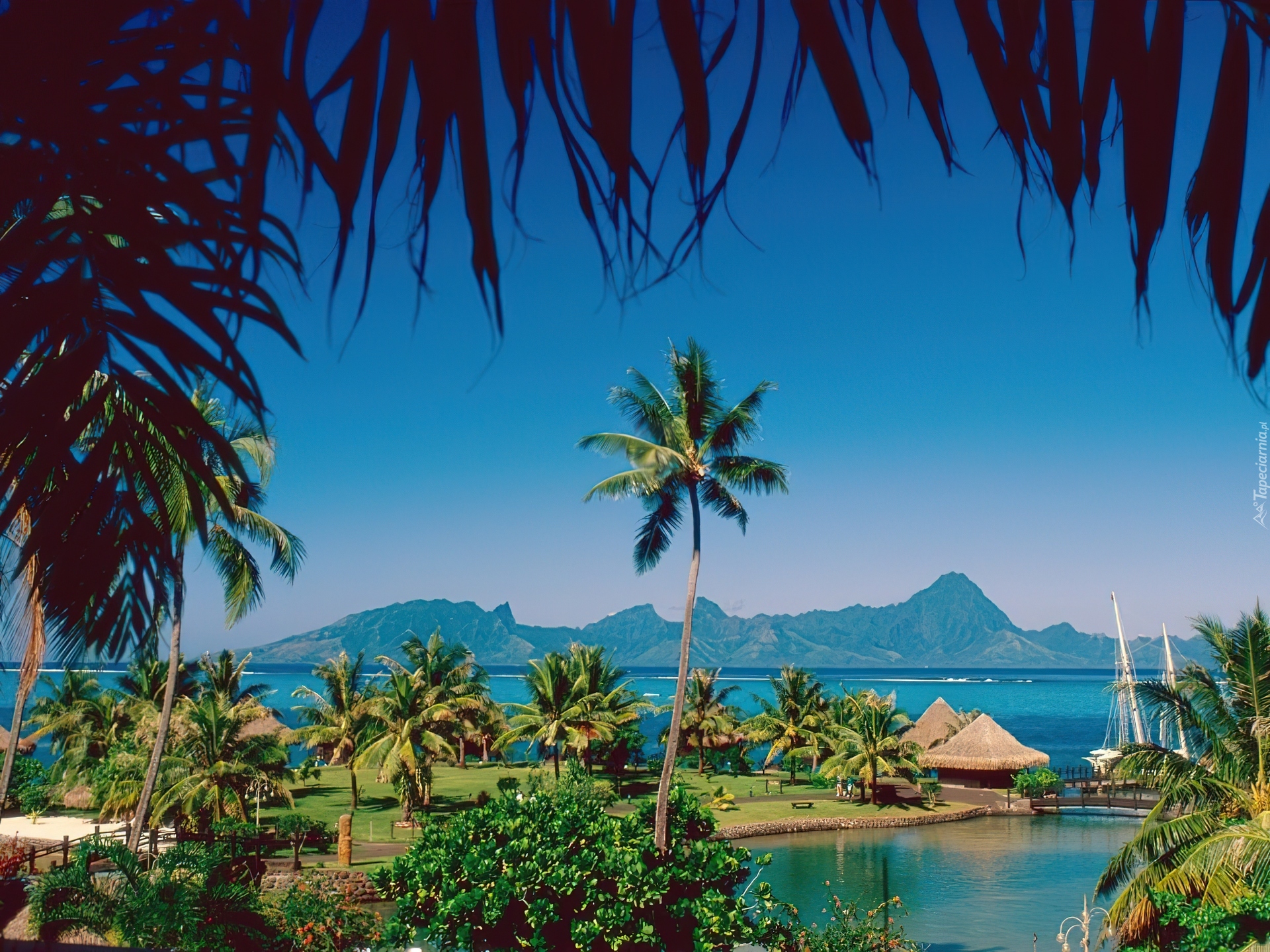 Edytor tapety: Woda, Palmy, Niebo, Domki