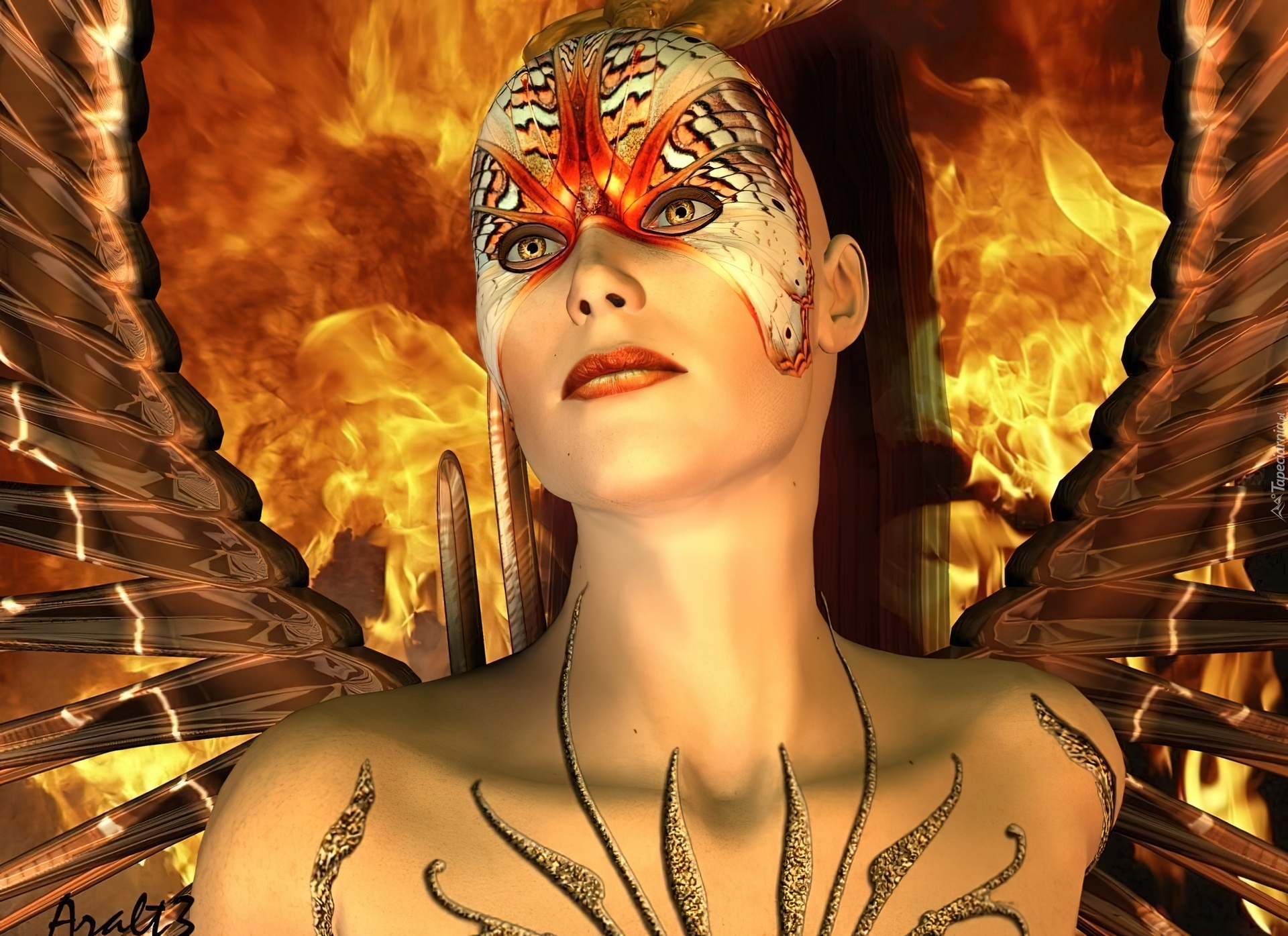 Edytor tapety: Kobieta, Anioł, Maska, Motyla