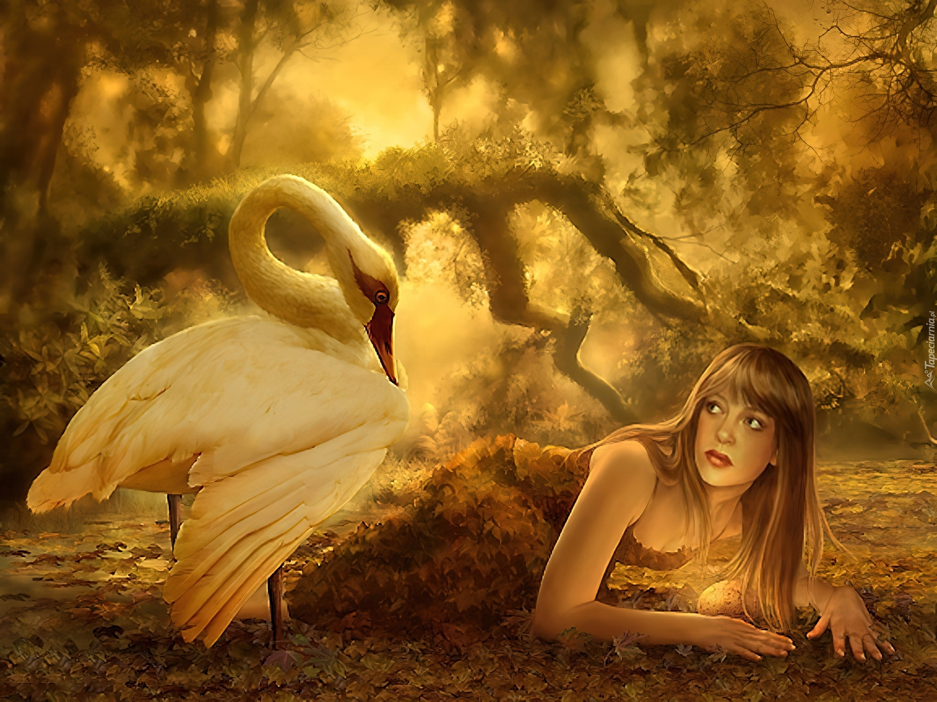 Edytor tapety: Kobieta, Jesień, Łabędź