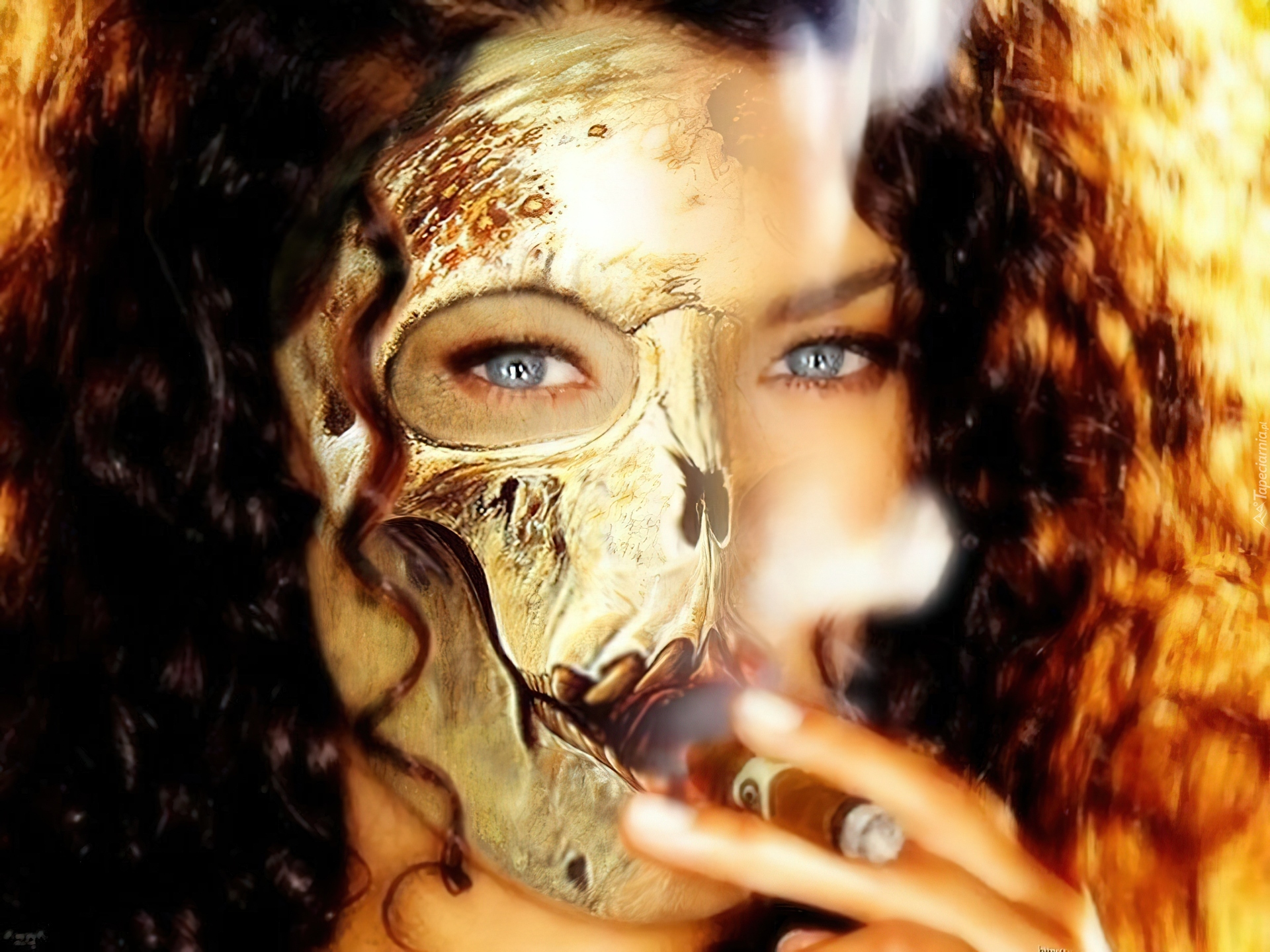 Edytor tapety: Twarz, Kobiety, Maska, Cygaro
