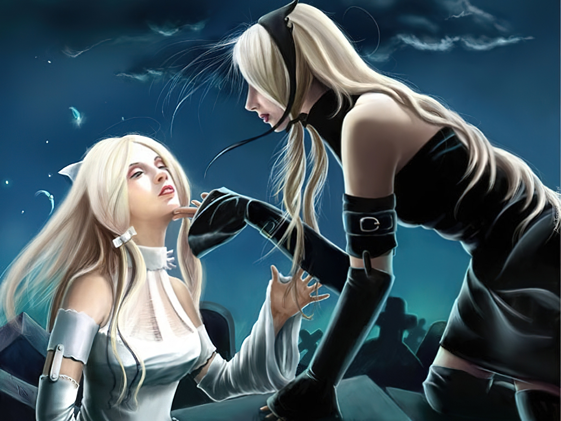 Edytor tapety: Dwie, Kobiety, Blondynki, Cmentarz