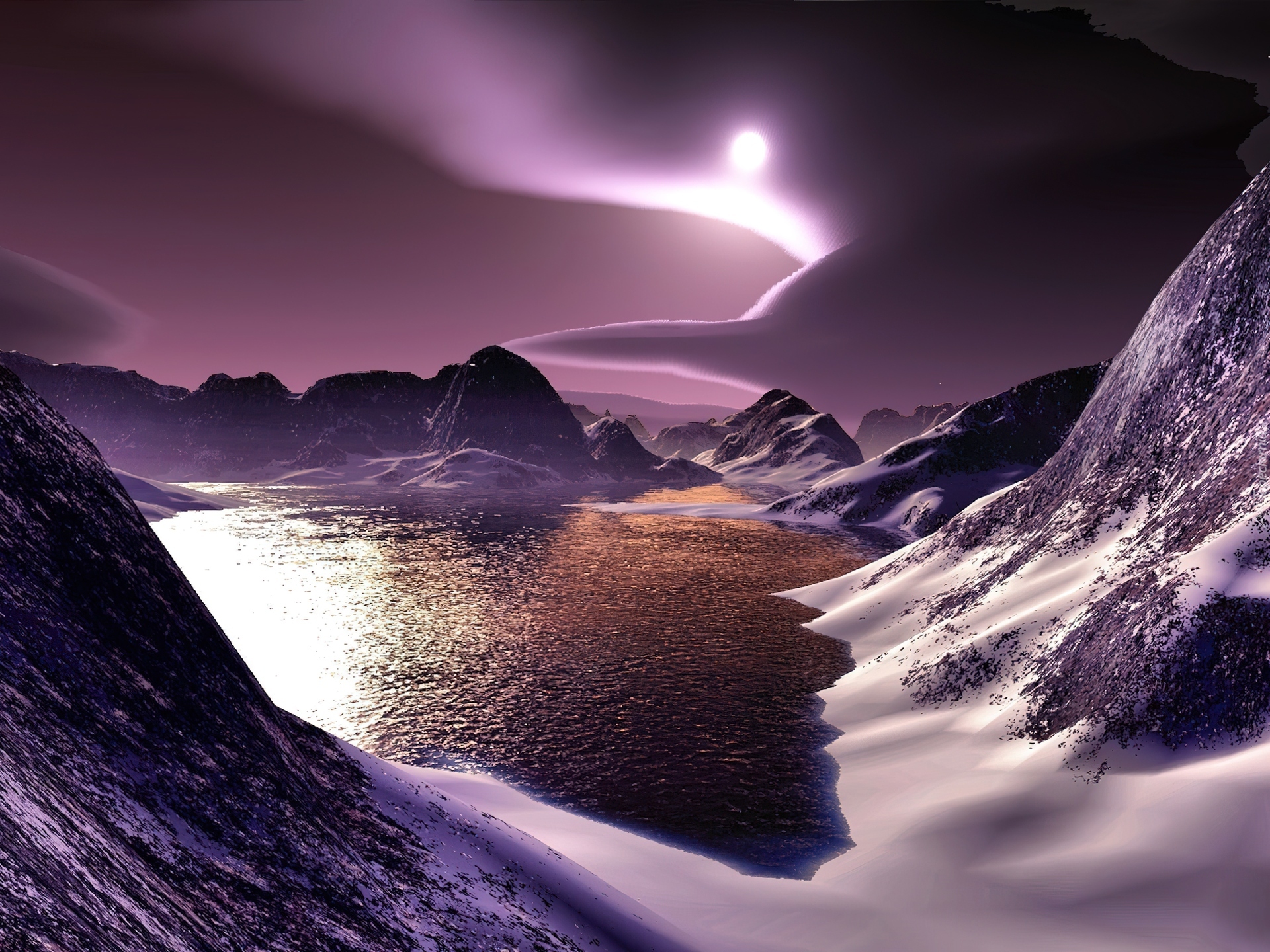 Edytor tapety: Jezioro, Góry, Księżyc
