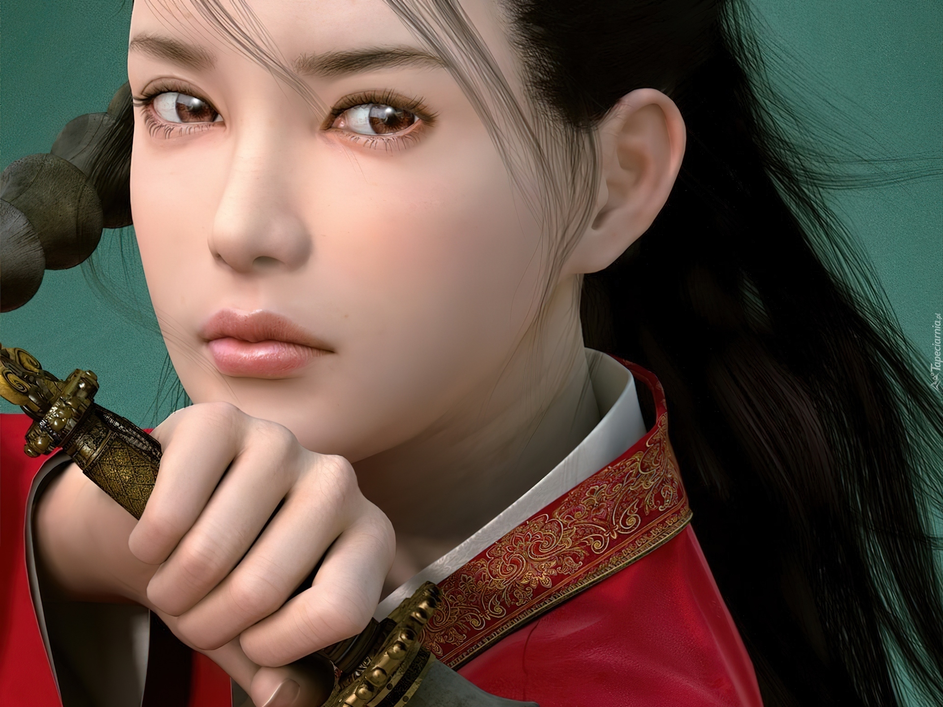 Edytor tapety: Dziewczyna, Miecz, Brązowe, Oczy