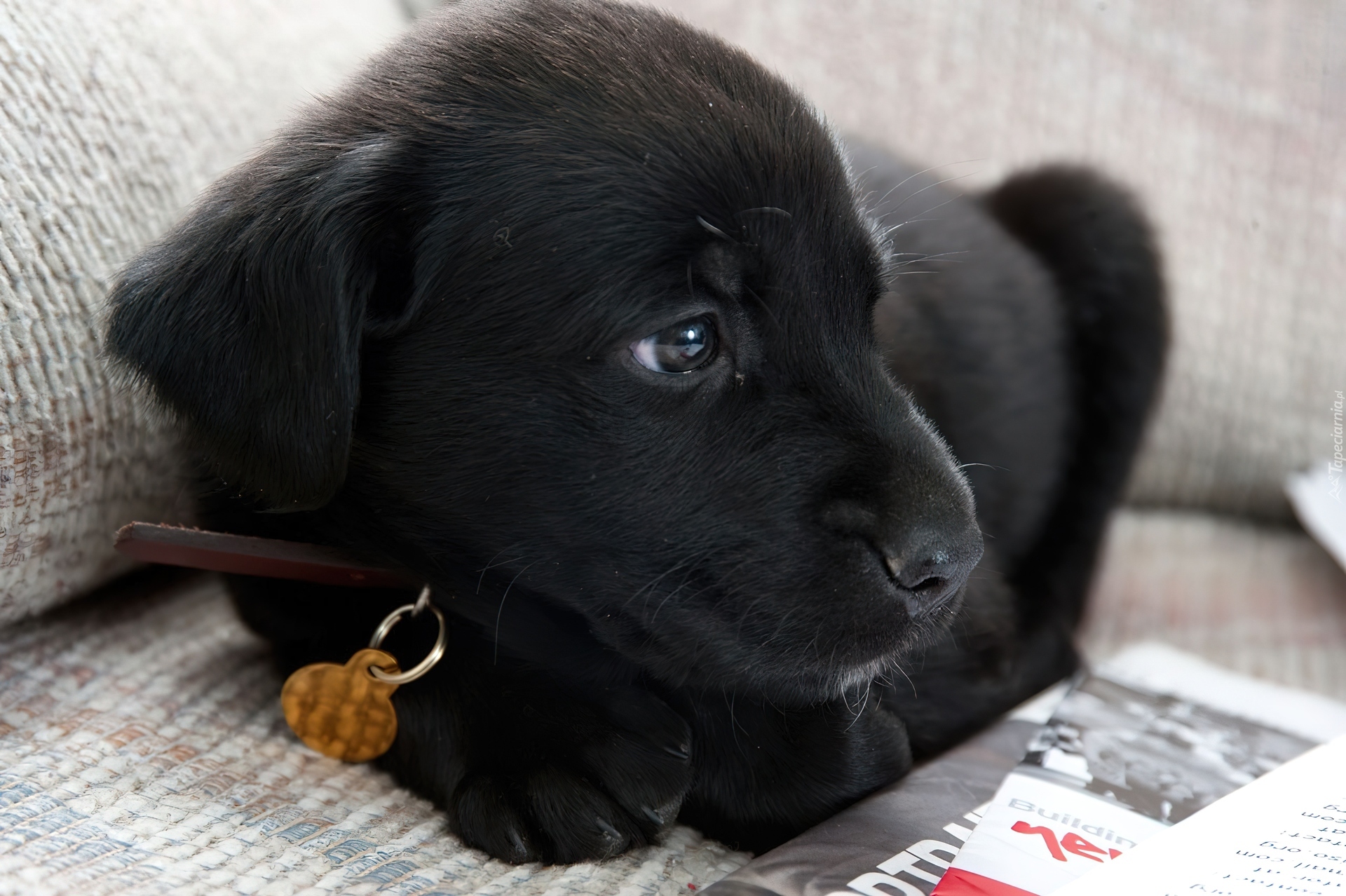 Edytor tapety: Czarny, Pies, Obroża, Gazety