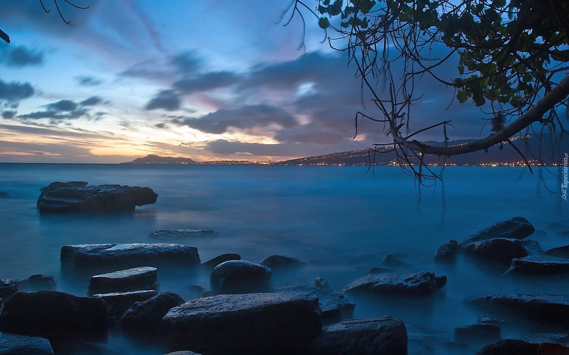 Edytor tapety: Jezioro, Kamienie, Światła, Miasta