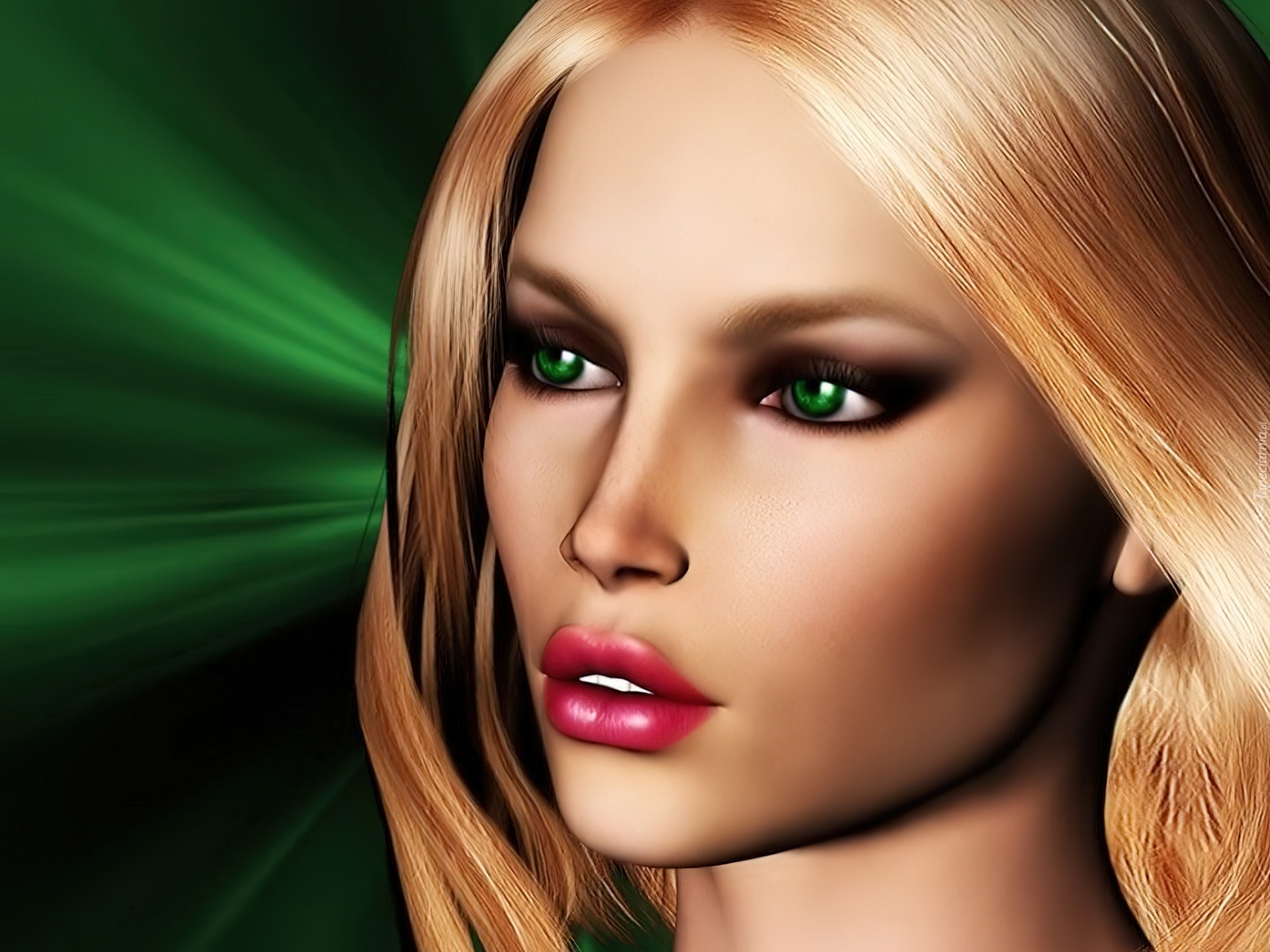 Edytor tapety: Dziewczyna, Blondynka, Zielone, Oczy, Grafika 2D
