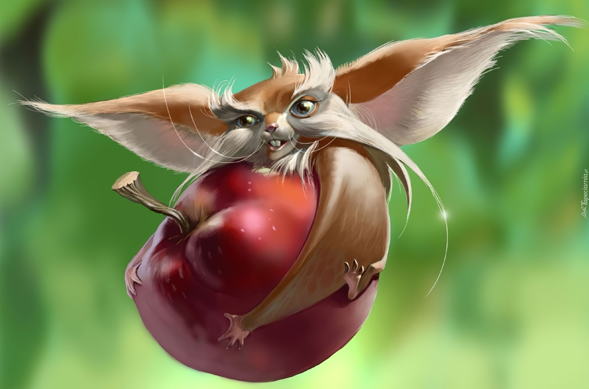 Edytor tapety: Stworek, Objęcia, Jabłko