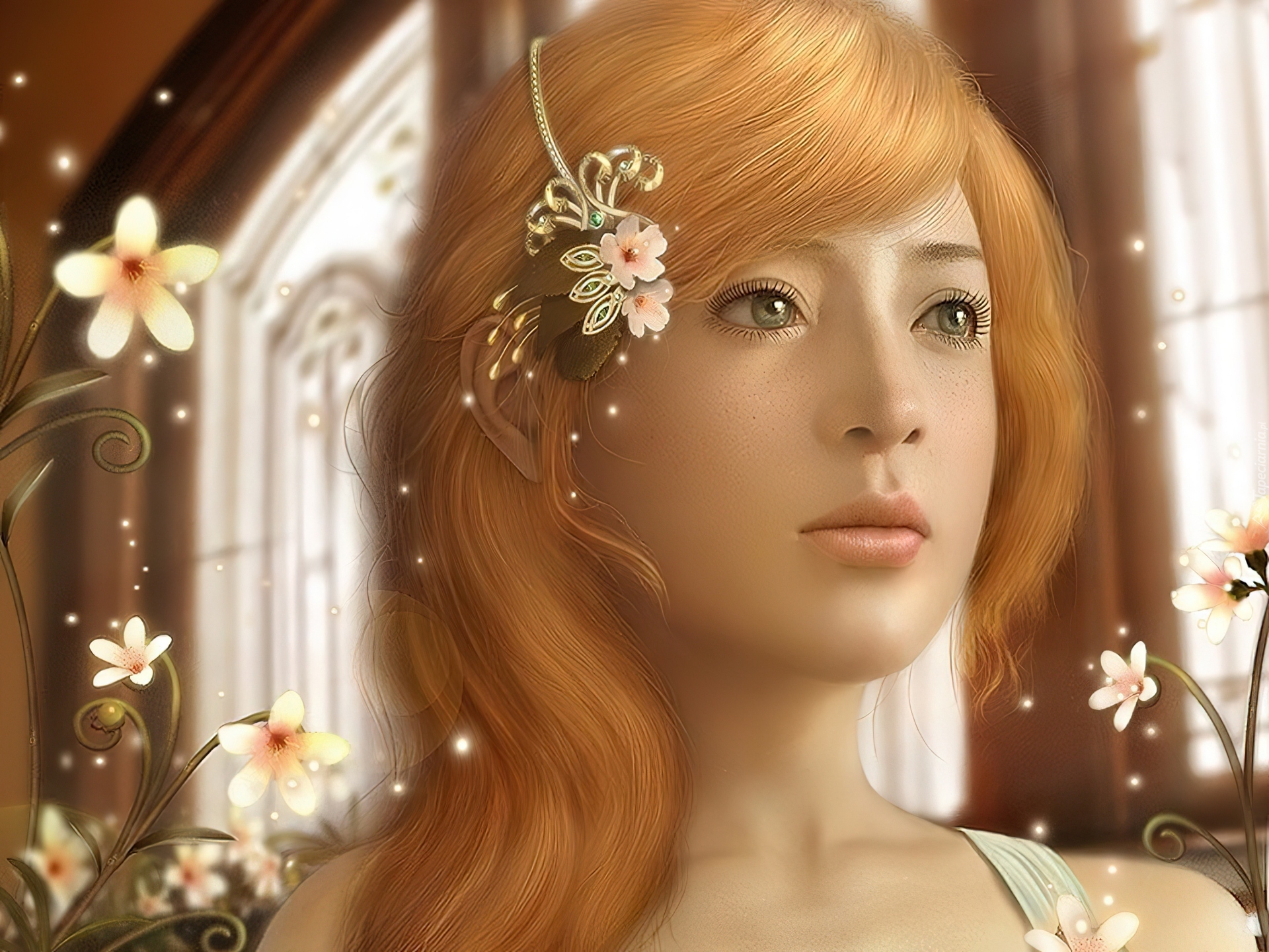 Edytor tapety: Dziewczyna, Spinka, Kwiaty