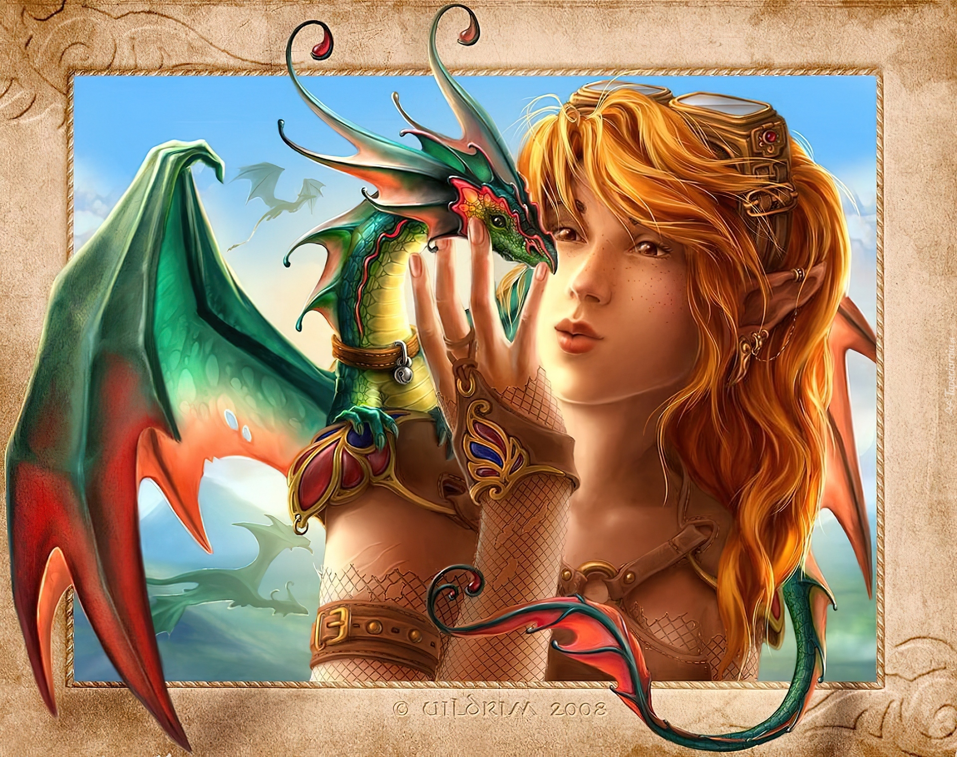 Edytor tapety: Dziewczyna, Obraz, Smok