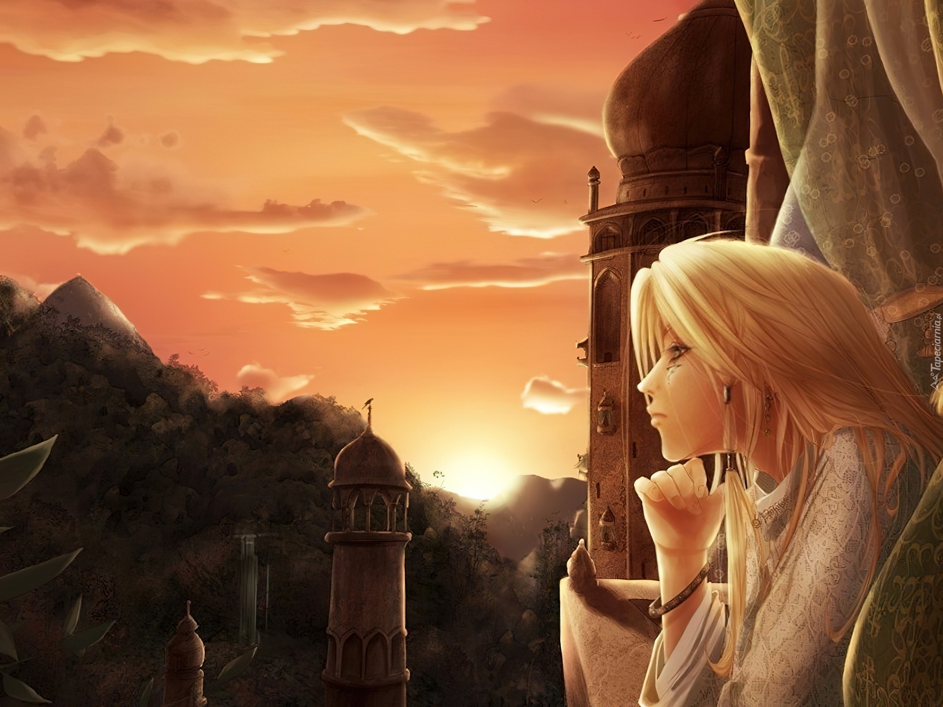 Edytor tapety: Dziewczyna, Patio, Zachód, Słońca