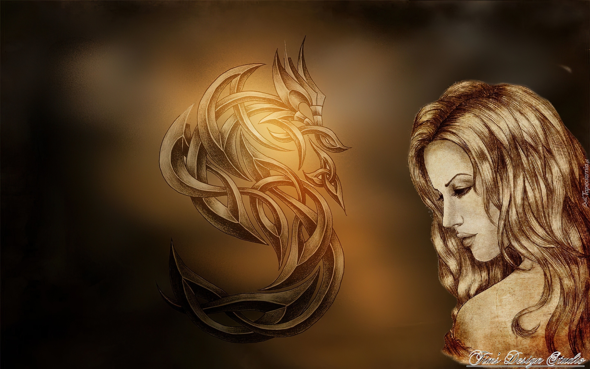 Edytor tapety: Smutna, Kobieta, Smok
