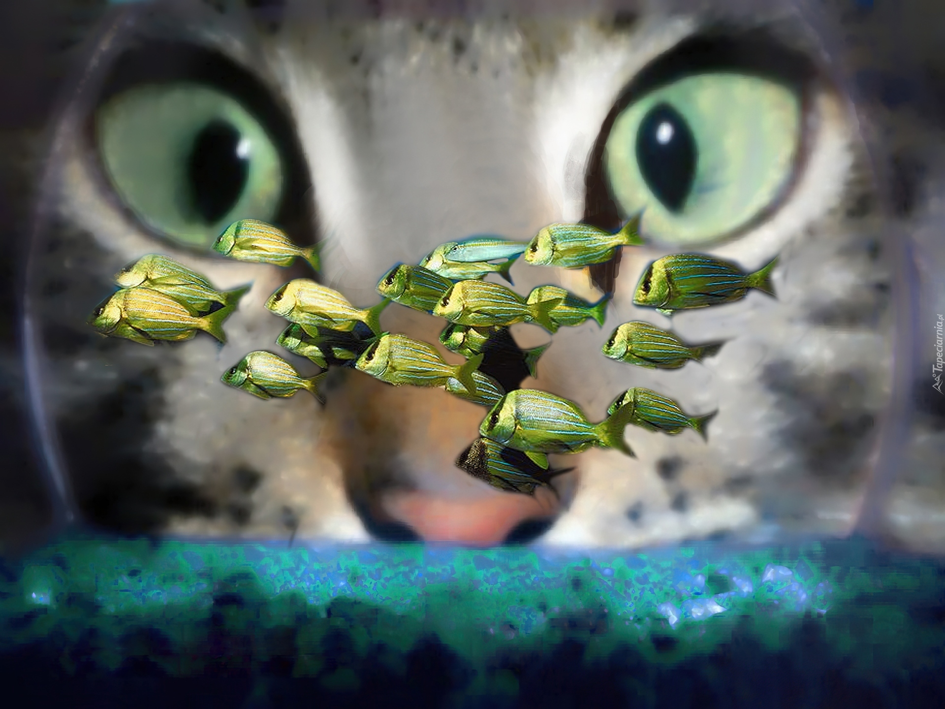 Edytor tapety: Kot, Akwarium, Rybki