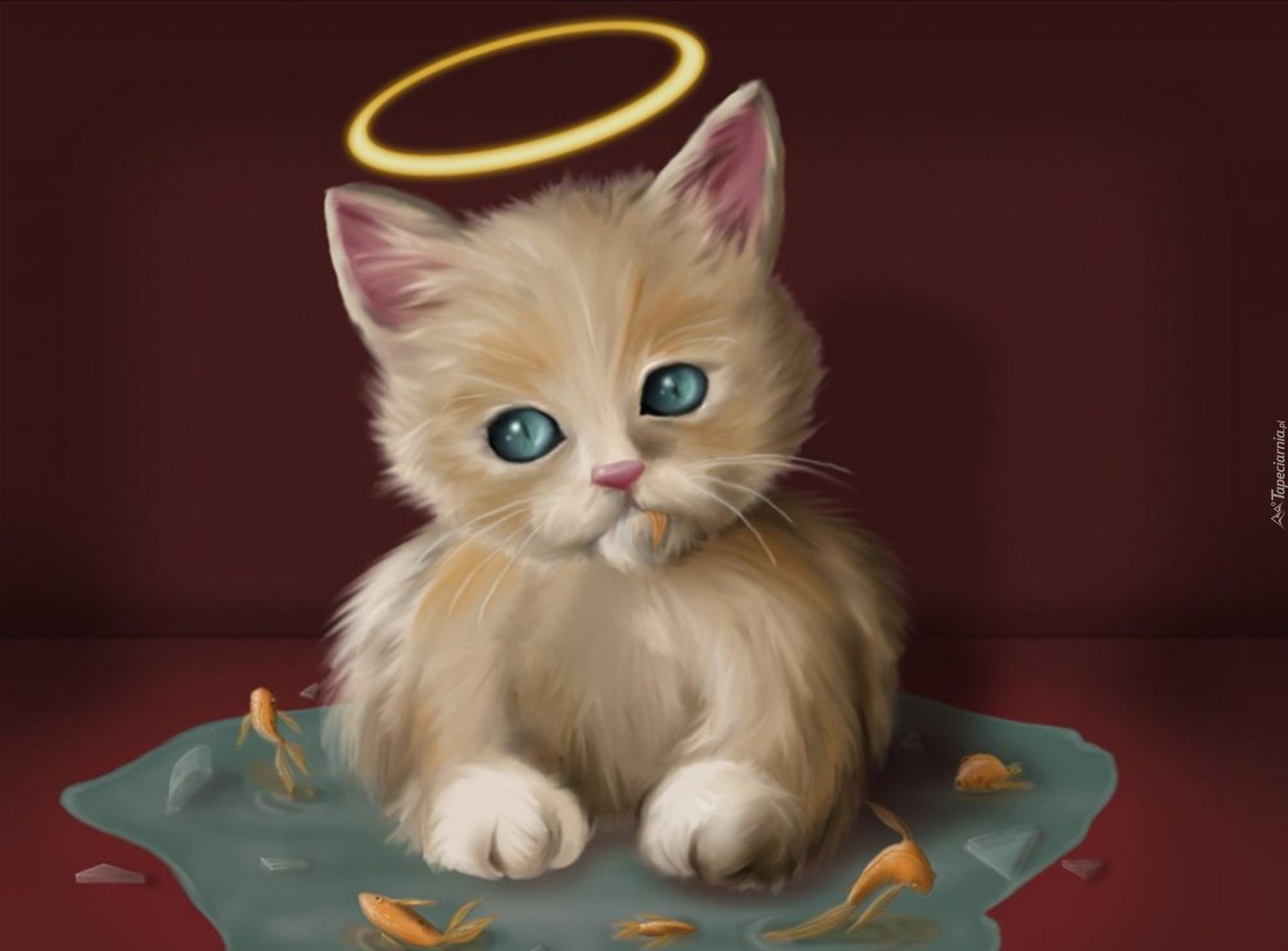 Edytor tapety: Kotek, Aureola, Rybki