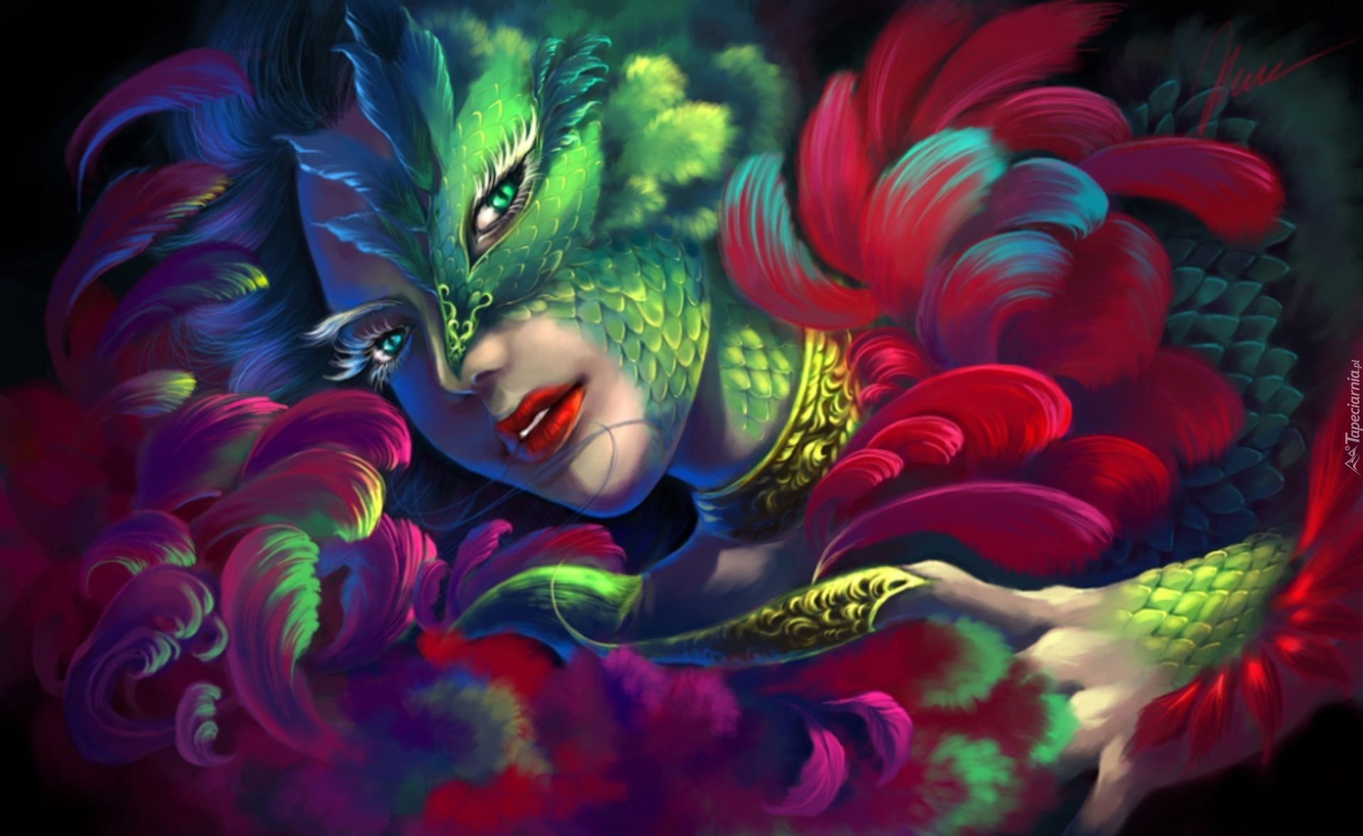 Edytor tapety: Kobieta, Kolorowe, Pióra