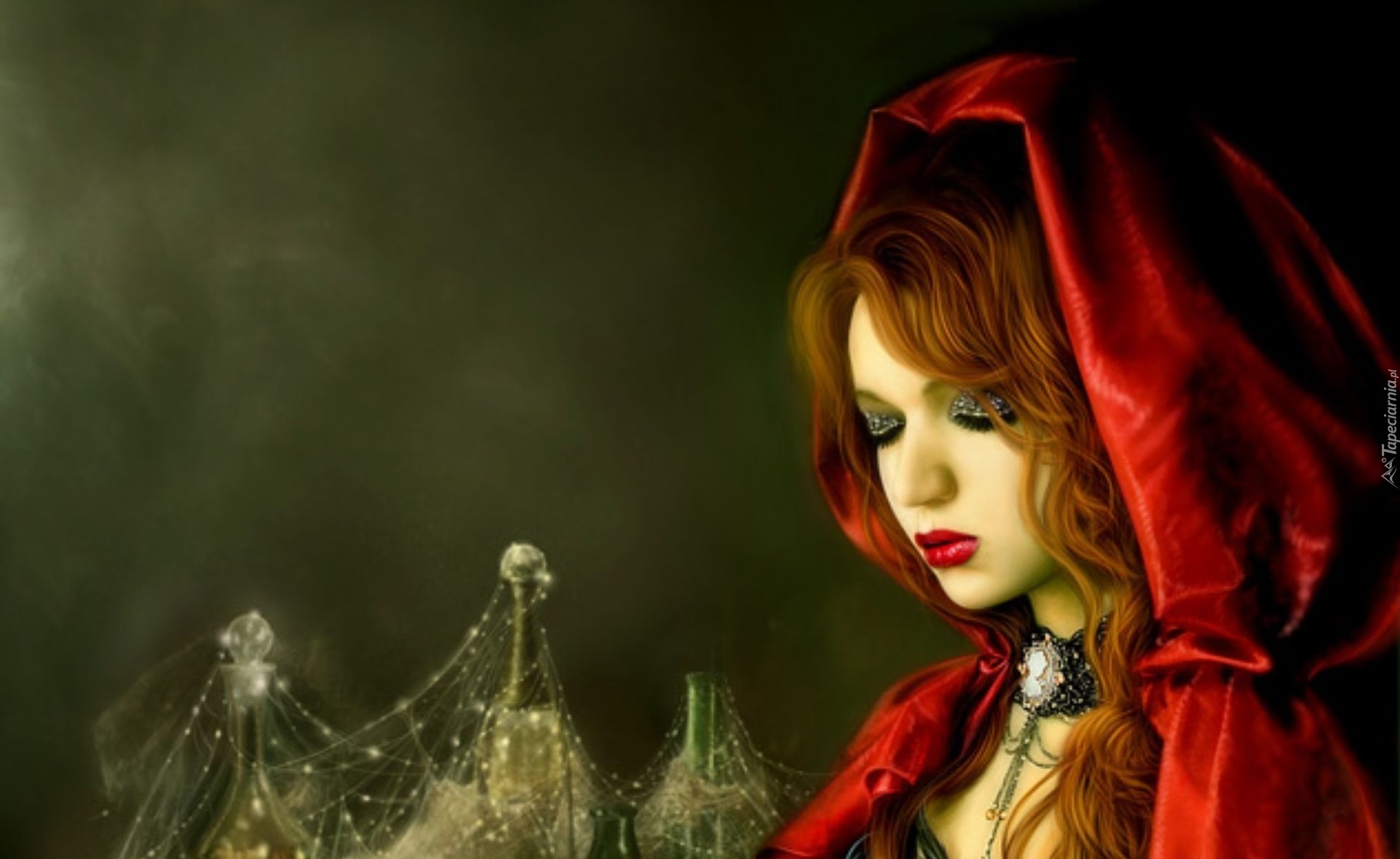 Edytor tapety: Kobieta, Czerwona, Peleryna, Fiolki