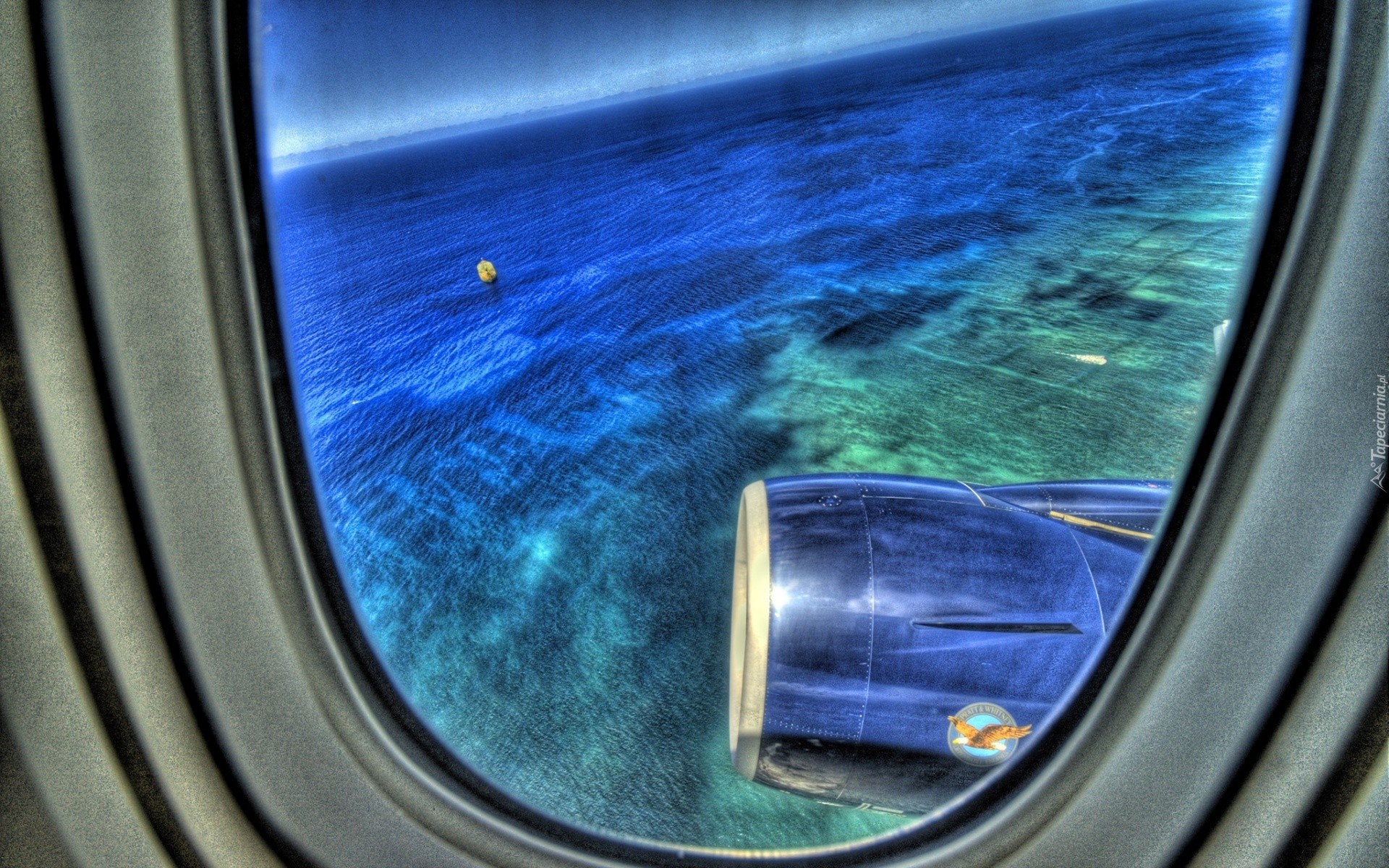 Edytor tapety: Okno, Samolot, Morze