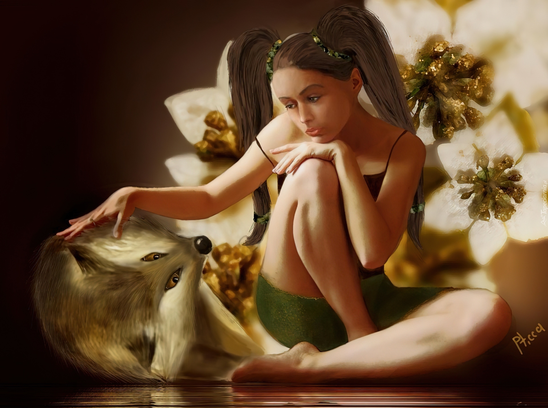 Edytor tapety: Dziewczyna, Kwiaty, Lis