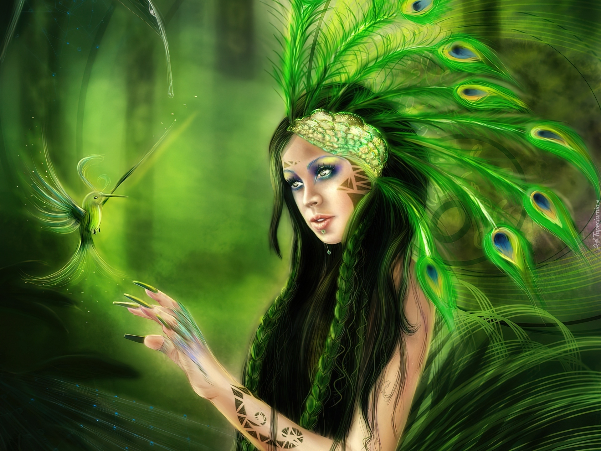 Edytor tapety: Kobieta, Pióropusz, Ptak