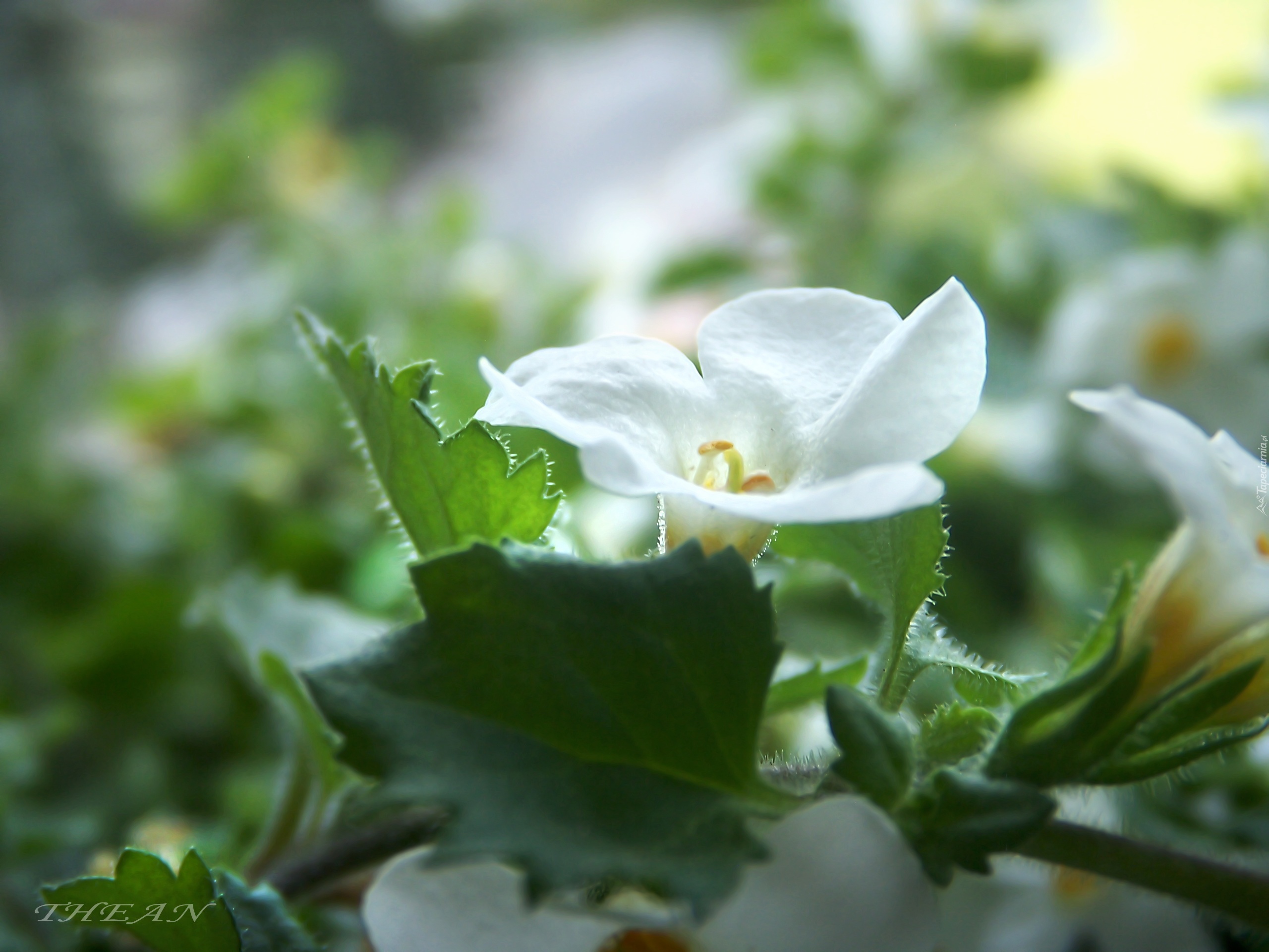 Edytor tapety: Biały, Kwiatek, Liście
