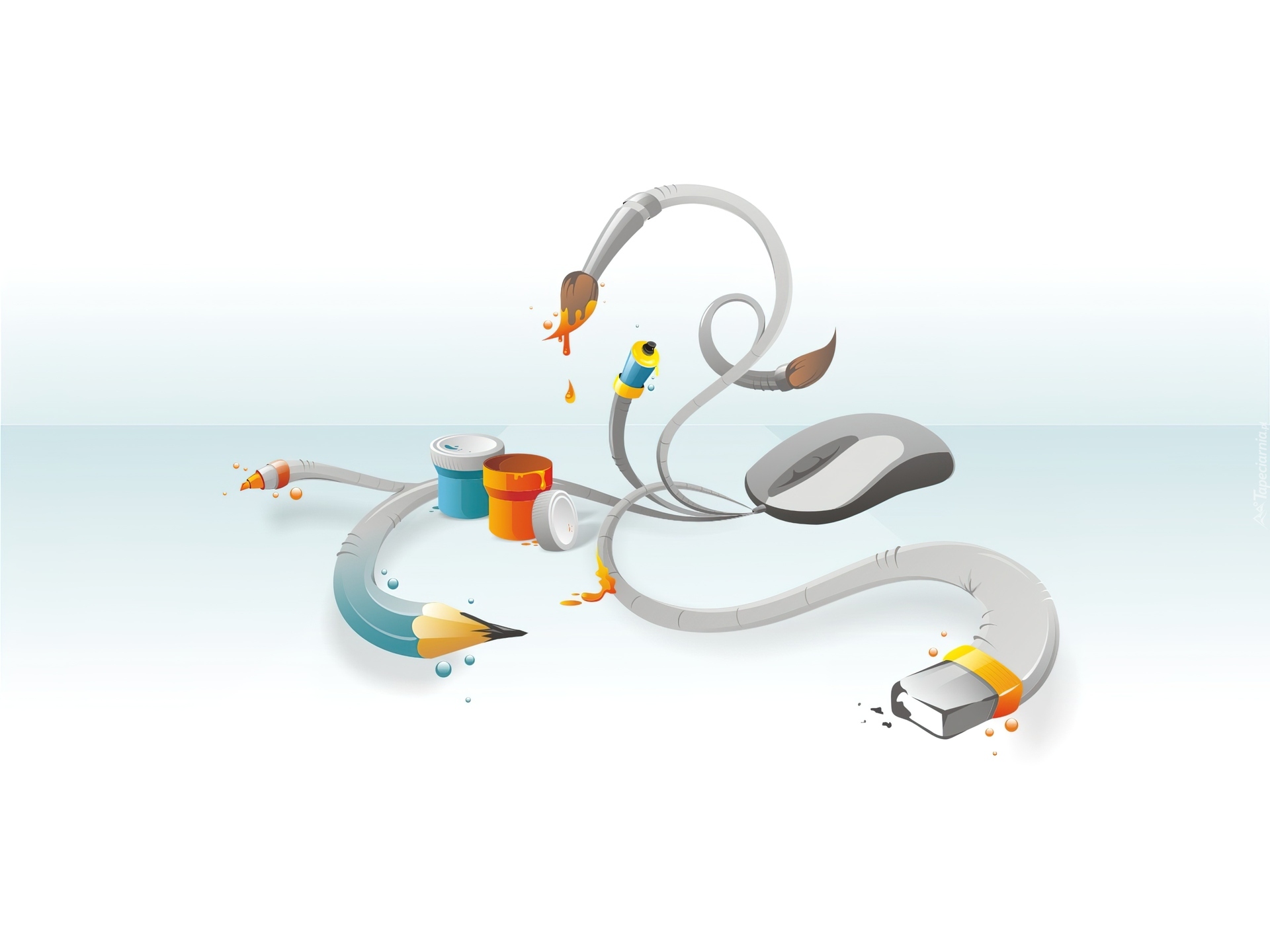 Edytor tapety: Farby, Pędzle, Ołówki, Myszka, Gumka