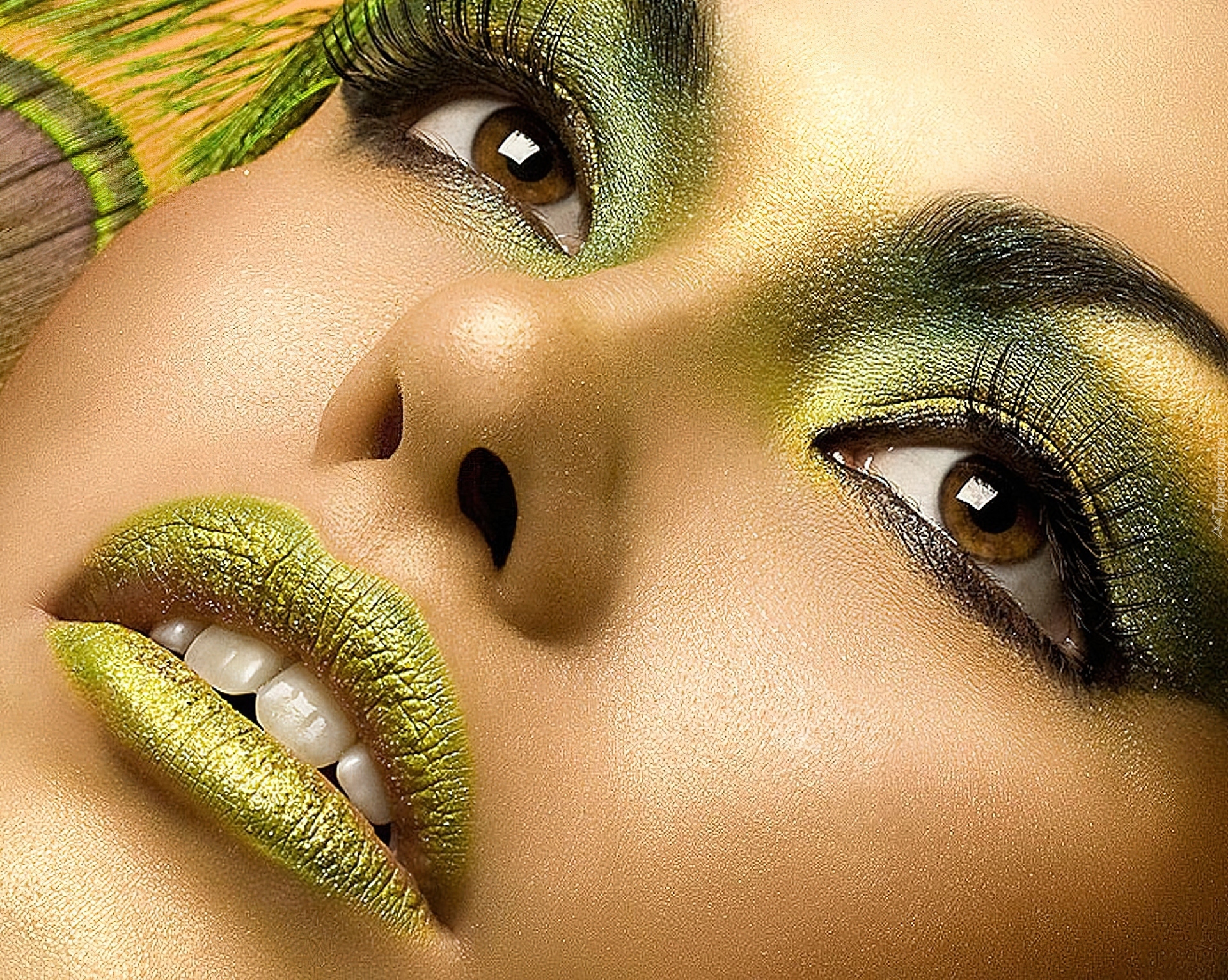 Edytor tapety: Zielony, Makijaż, Usta, Oczy
