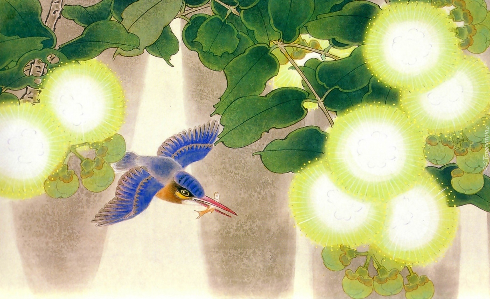 Edytor tapety: Ptak, Gałązki, Kwiaty