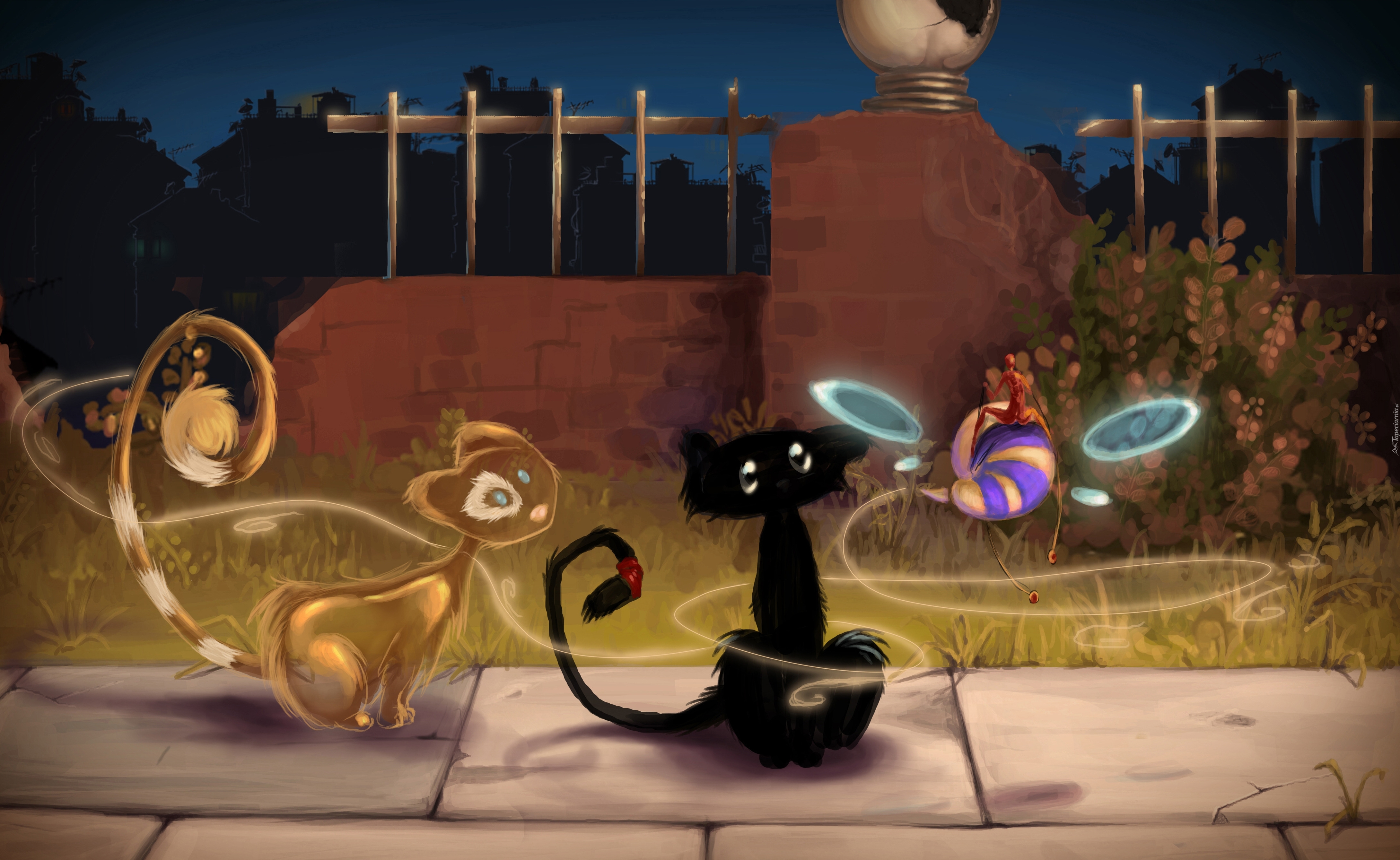Edytor tapety: Noc, Koty, Murek, Ogrodzenie, Fantazja, Grafika