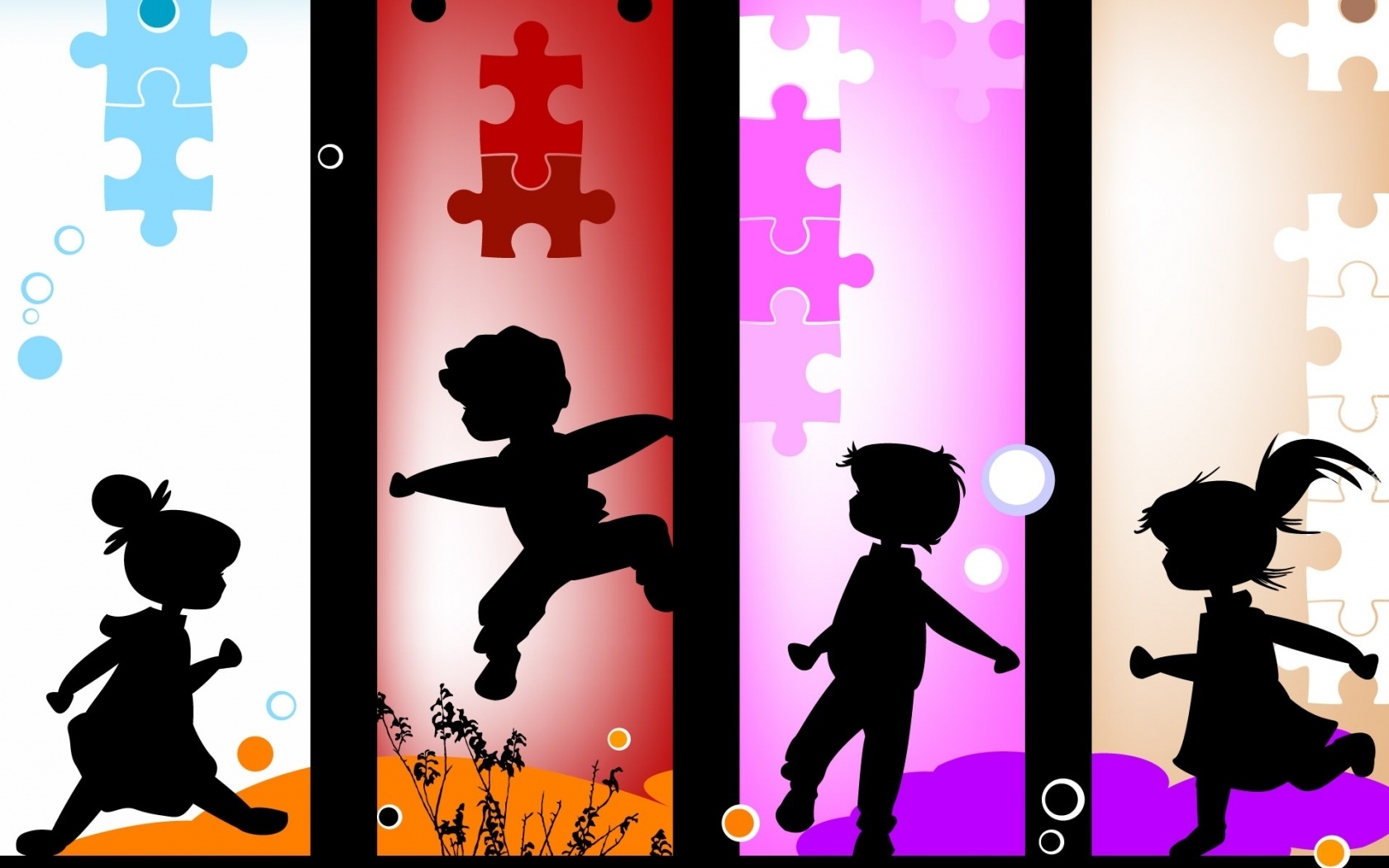 Edytor tapety: Czworo, Dzieci, Radość, Cztery, Scenki, Puzzle