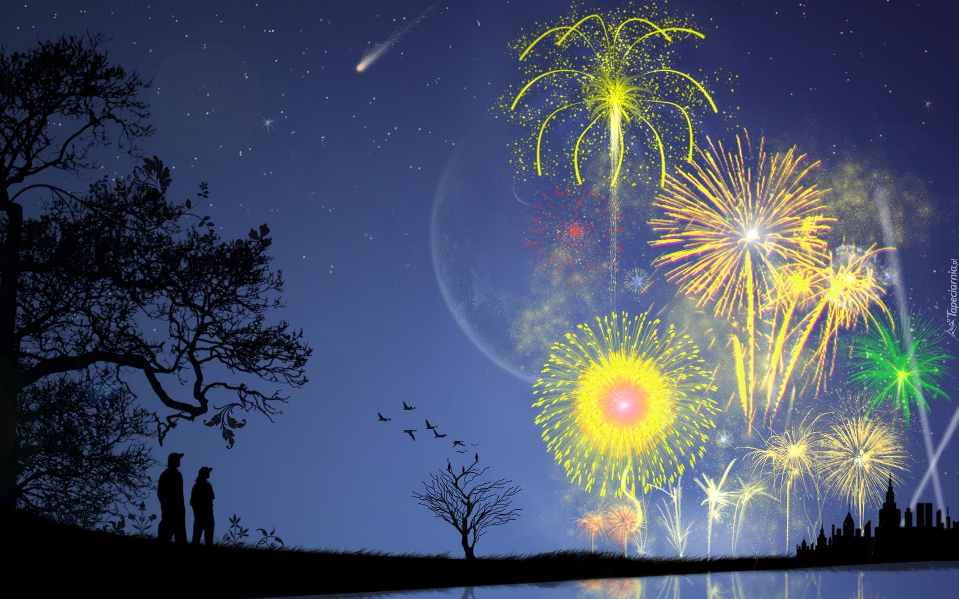 Edytor tapety: Noc, Para, Ludzi, Rzeka, Miasto, Fajerwerki
