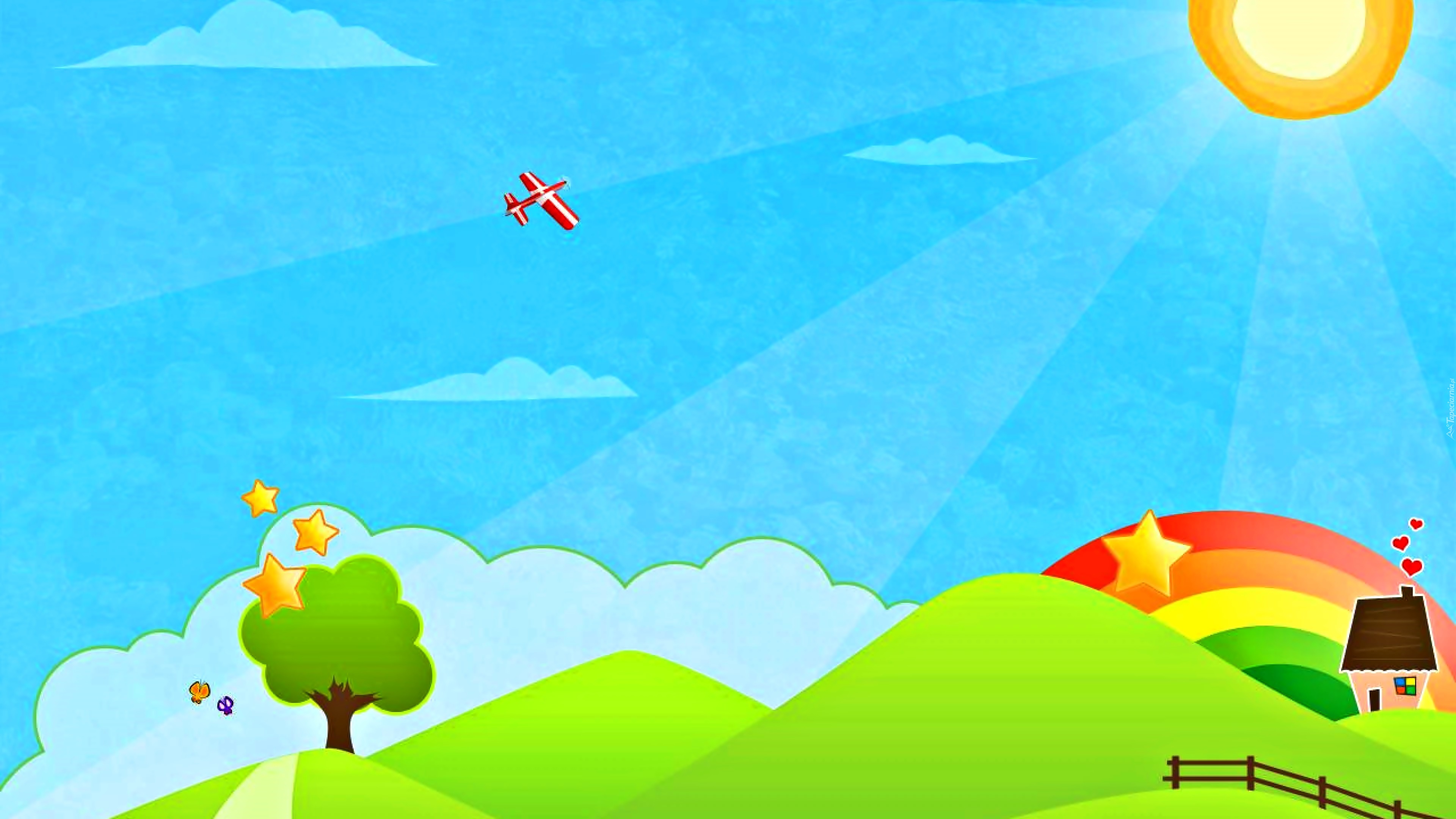 Edytor tapety: Krajobraz, Łąka, Drzewo, Dom, Tęcza, Samolot
