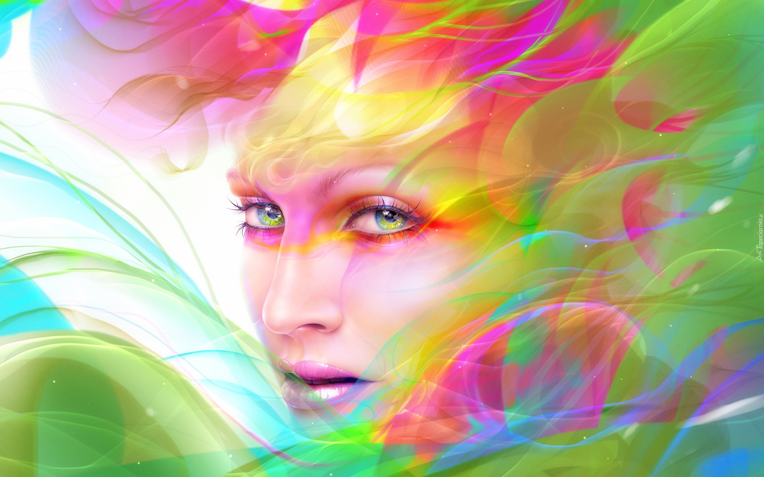 Edytor tapety: Kobieta, Kolorowy, Makijaż, Tęczowe, Smugi
